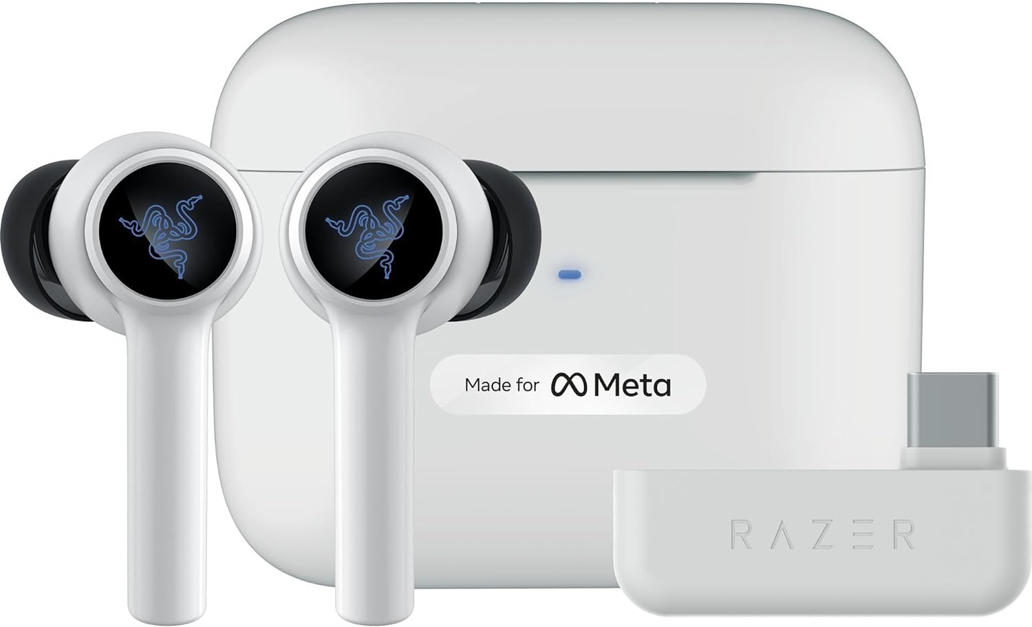 Razer Hammerhead HyperSpeed Wireless Gaming Earbuds for VR: Meta Quest 2 & 3 Authorized - 2.4Ghz Wireless via USB-C - Bluetooth 5.2 - Multi-Platform - ANC - 30 Hr Battery - Comfortable Fit - White