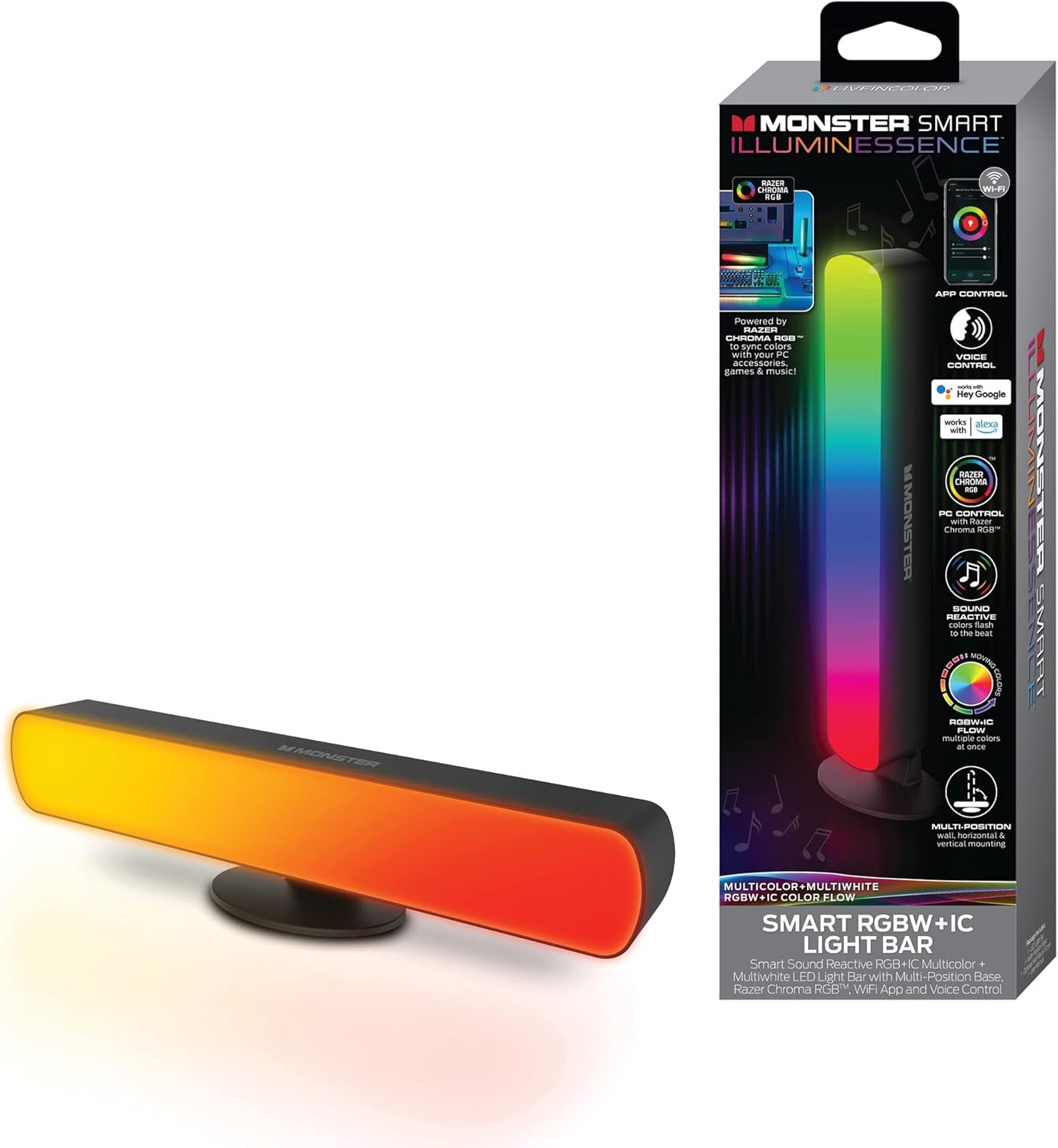 Monster LED Smart LED Light Bar, Compatible with Alexa, Google Assistant, and Powered by Razer Chroma Color Flow WiFi TV Backlights,Gaming Lights Scene and Xtreme Music Modes