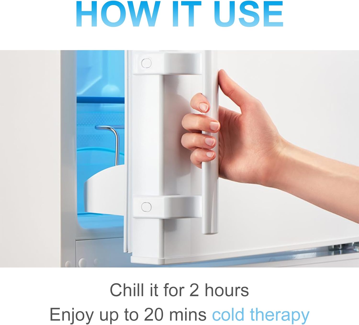 ¡Disfruta de una compresa fría de 20 minutos después de 2 horas de congelación! El tiempo de compresa fría puede variar dependiendo de la temperatura del ambiente y del cuerpo. Si desea un tiempo de terapia fría más largo, puede usar nuestro paquete de hielo de repuesto como reemplazo para extender el tiempo de terapia.