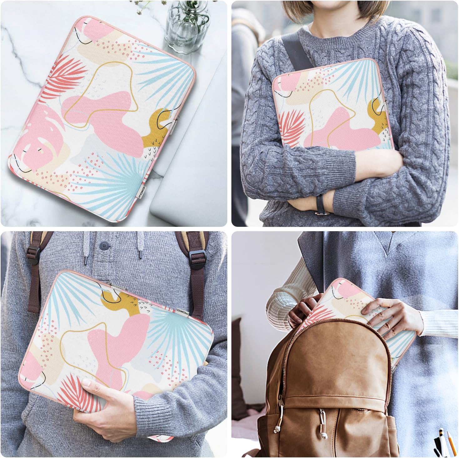 MoKo 12.9 Inch Laptop Sleeve Case Fits iPad Pro 12.9 M2 2022/2021/2020, Galaxy Tab S8+/S9+ 12.4 2022/2023, Surface Laptop Go 12.4", Polyester Bag Fit with Apple Pencil and Smart Keyboard,Tropical Leaf