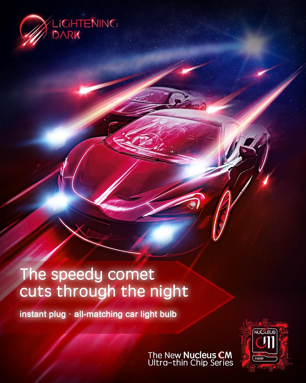 [Easy installation]: LIGHTENING DARK light bulb designed to match the scale of original car lights, also fit for ATV/UTV powersports light. Restore wireless instant plug design, no need to modify the dust cover of the original car, achieve quick replacement in 10 minutes. Smaller, simpler, and more convenient