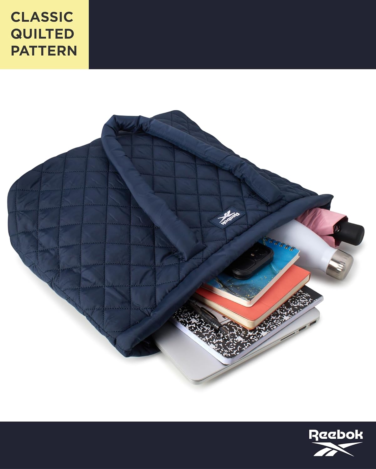 Reebok Womens Tote Bag - Lightweight Carry On Quilted Puffer Tote Bag for Travel, Work, Travel and Everyday Use