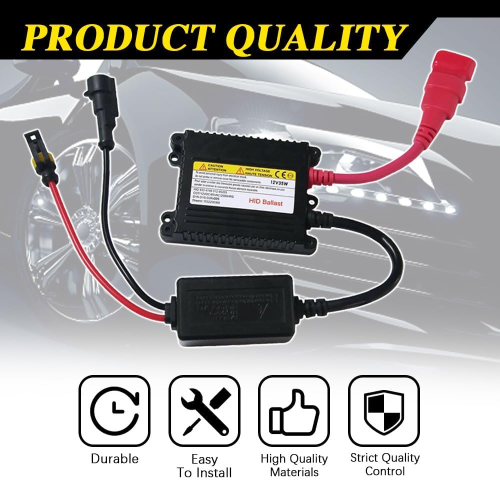 Compatible: The Automotive HID Ballast is universal fit for all size halogen lamps to HID xenon. H1, H3, H3C, H4-1, H4-2, H7, H7C, H7R, H8, H9, H10, H11, H13, H13-2; D2S, D2C, D2R; 9004, 9004-2, 9005, 9006, 9007-2, 9007, 9007-3; H4-3, H13-3, 9004-3; H4-4, 9004, 9007-4, H13-4