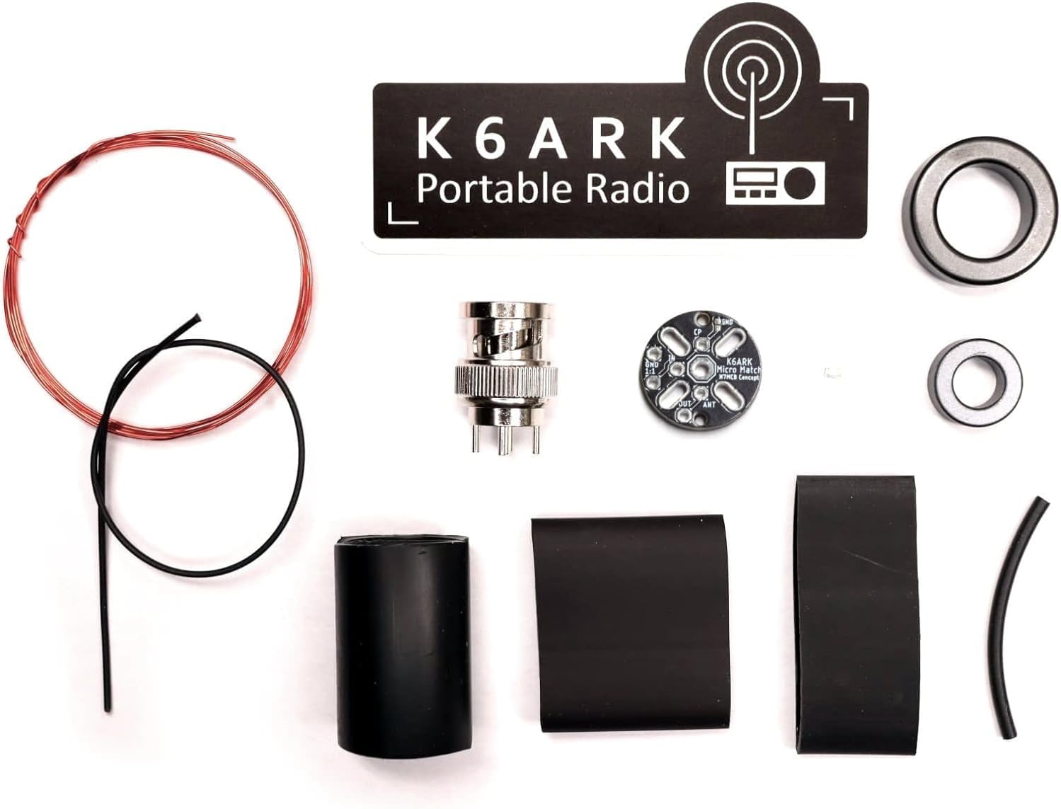 The K6ARK Portable Radio 20w matching unit design is one of the most compact and light-weight options for a portable HF antenna, designed specifically for use with low power HF rigs like the Xiegu G90 and Elecraft KX3 and KX2. This kit improves the original design, making the build easier. This kit provides the components necessary to build one matching unit. Just add antenna wire of your choice to build an End-fed Half Wave, End Fed Random Wire, or a 1:1 Balun feed point for a dipole antenna. Tools/consumables required include a soldering iron, solder, tweezers, and a heat gun (preferred) or a lighter to shrink the heat-shrink tubing. Note that this kit contains small parts that may be difficult for some individuals to assemble, but the end result is well worth it. These kits are produced by me, K6ARK, and I welcome questions, and am eager to help you succeed in your build project. Have fun with your build!