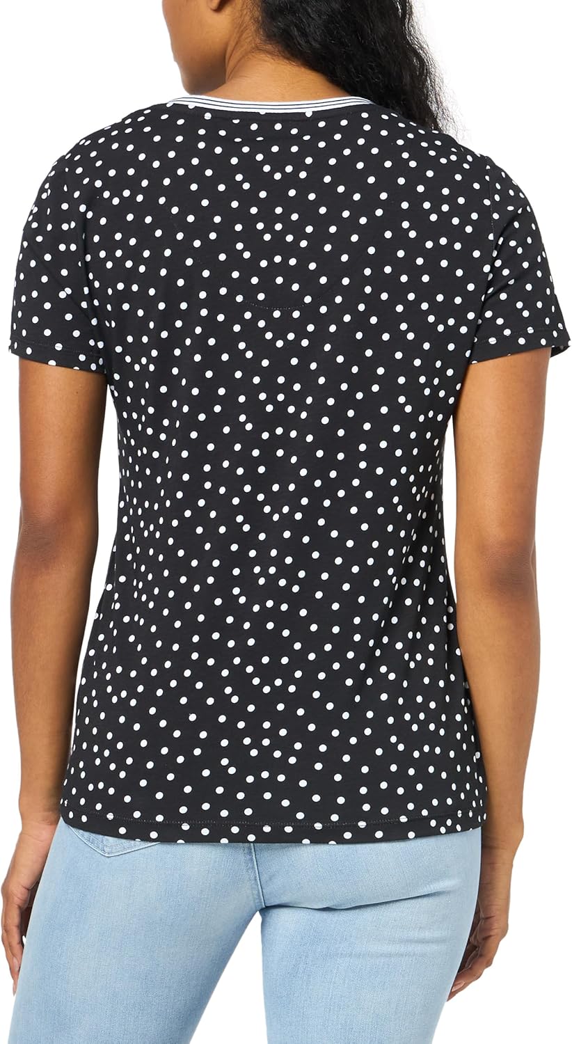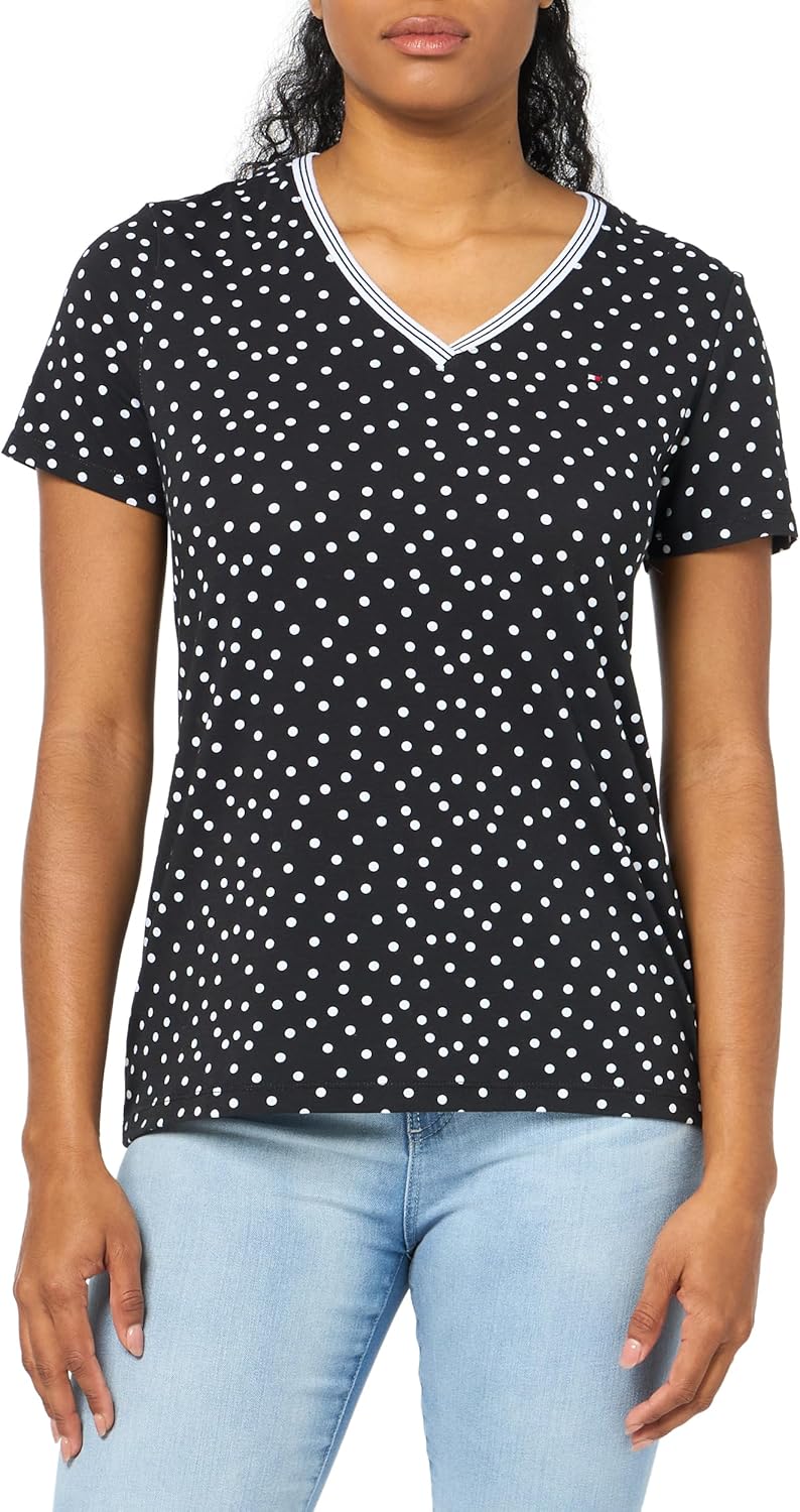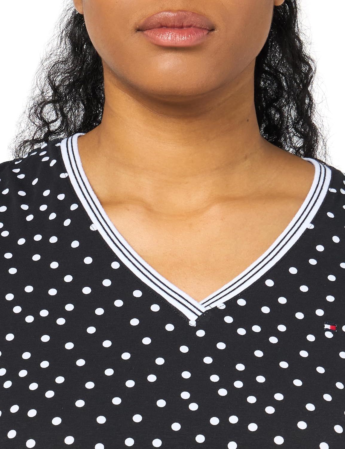 This Tommy Hilfiger Women's Sportswear T-shirt is a short sleeve pullover top with a v-neckline in a dot print cotton fabric