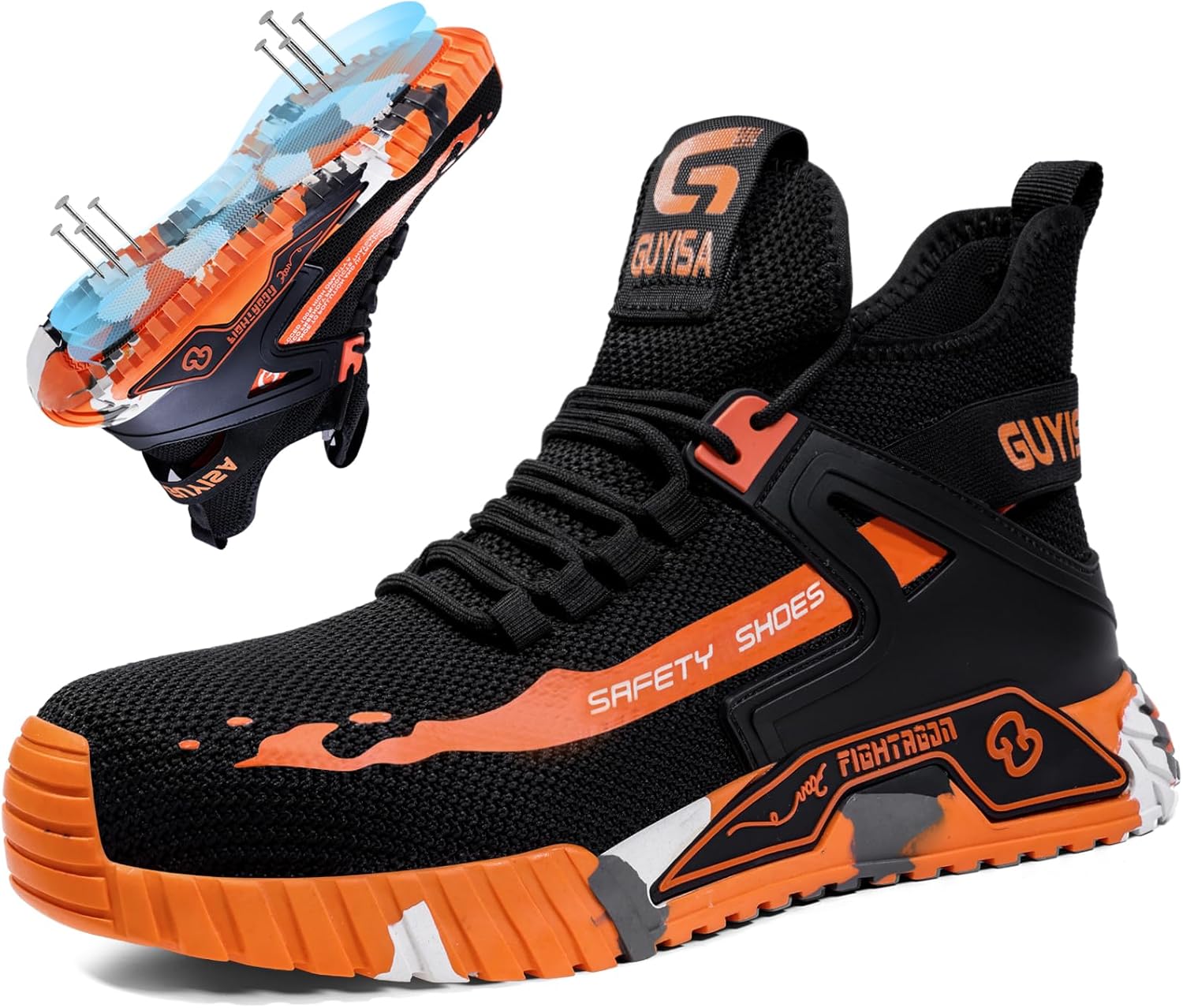 Steel Toe Shoes for Men Work Safety Shoes Industrial Construction Shoes Mid Cut Industrial Boot Work Sneakers Comfortable Lightweight Safety Shoes for Work