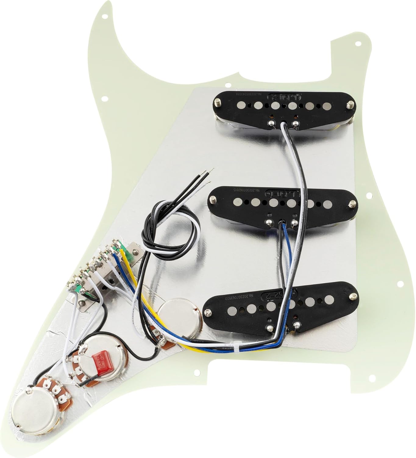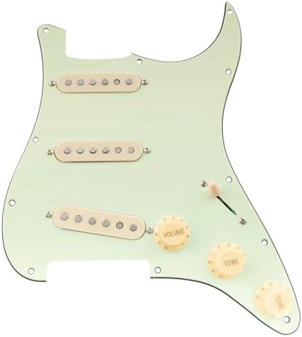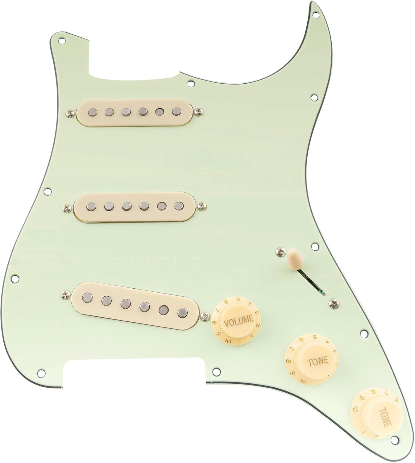 Musiclily Pro-SE ST-60SE Pre-wired SSS Pickguard with Staggered Alnico 5 Pickups for Strat Style Electric Guitar, Mint Green 3Ply