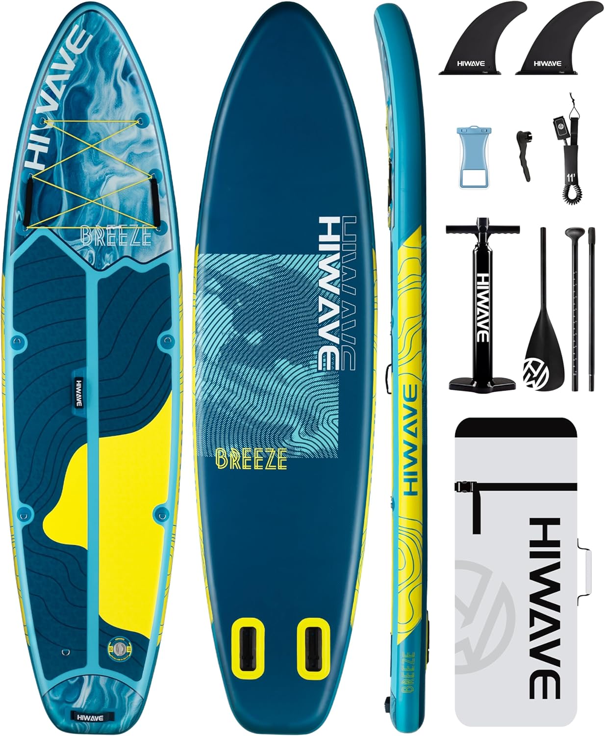 PACKAGE INCLUDING adjustable aluminum paddle, safety leash, double action hand pump, waterproof phone bag, upgraded backpack, two removable fins and repair accessories. BOARD DIMENSION 11ft length, 34 inches width and 6 inches thickness, achieved amazing balance ability. Weight limit up to 420 lbs. We also offer 1 year parts WARRANTY and TELEPHONE service to secure customer experience.