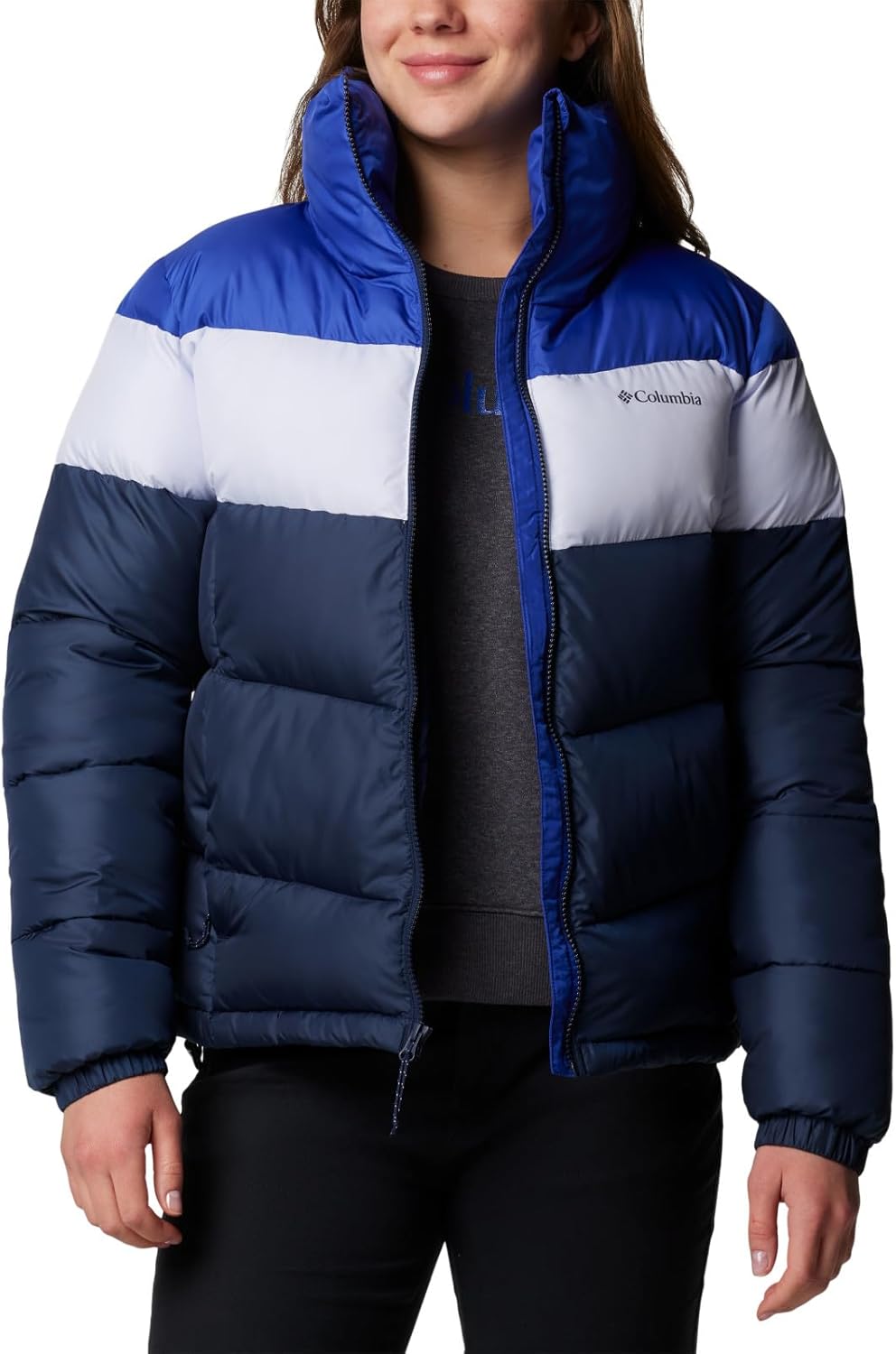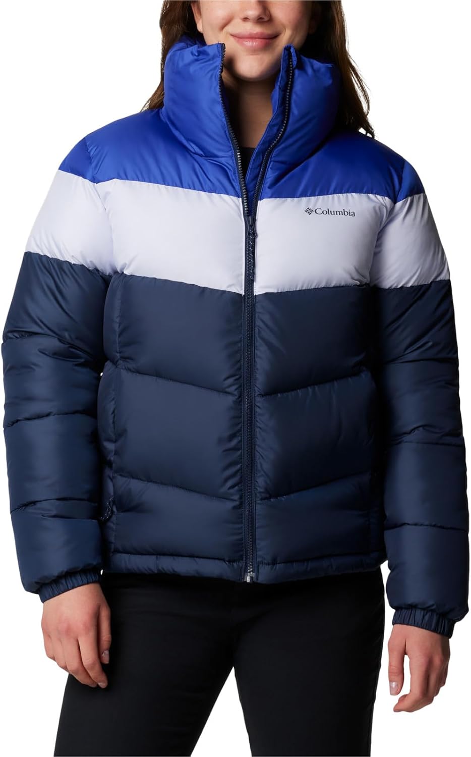 A cozy solution to cold weather, this Columbia women’s puffer jacket delivers incredible warmth with lightweight, recycled synthetic insulation and a high collar. The water-resistant fabric keeps light rain out, while the zip-closed pockets stash your essentials safely. Columbia offers this jacket in multiple colors and sizes. Regular fit.
