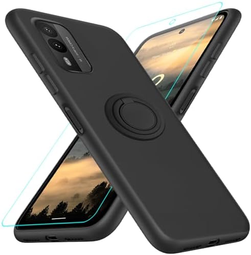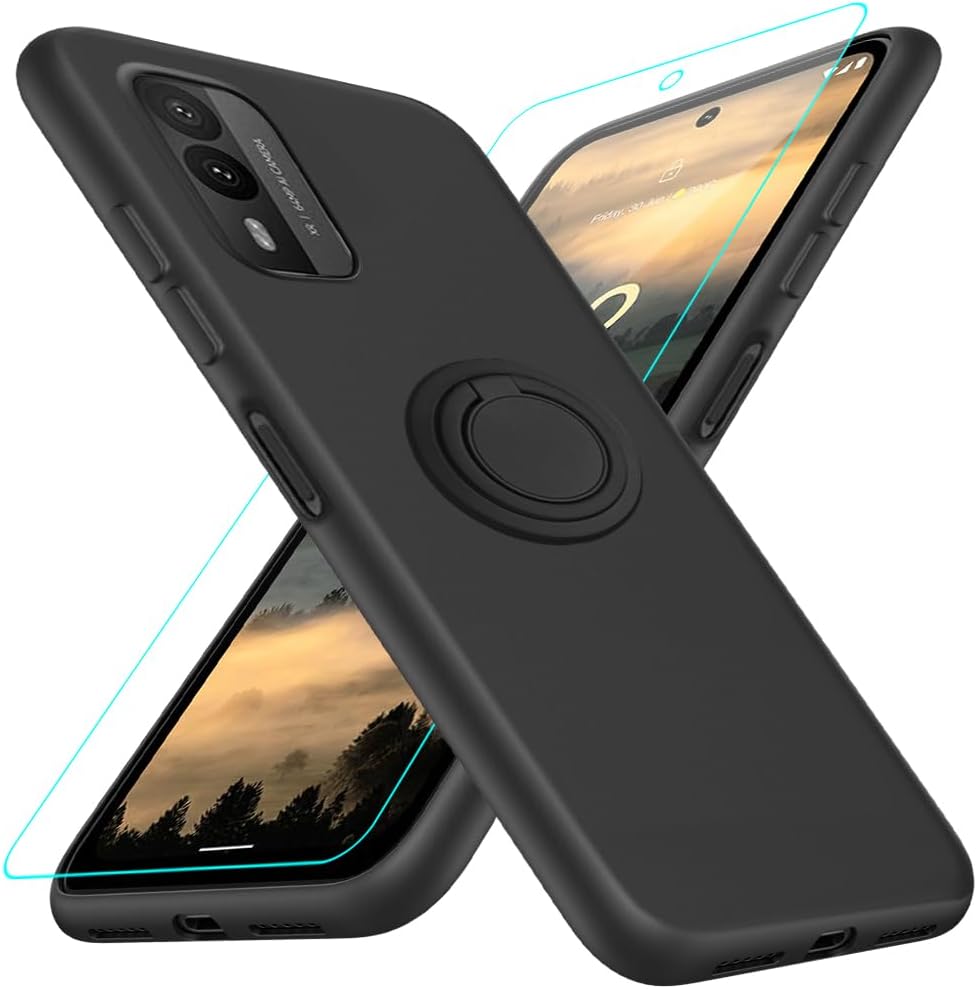 for Nokia XR21 5G Phone Case with Glass Screen Protector, 360° Rotatable Ring Holder Magnetic Kickstand/Stand Silicone TPU Shockproof Protective Cover Case for Nokia XR21 5G - Black