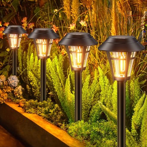 【Easy to Assemble & Auto ON/OFF】 No wiring or any tools are required to install these garden solar lights outdoor, very easy to use. Quickly install these solar path lights by pushing this outdoor solar lights into the ground. The solar yard lights will automatically turn on at dark and turn off at dawn. No need to set it every time, free your hands. The solar walkway lights outdoor will create more wonderfully for your garden, which great meet the lighting needs of your pathway, backyard, and garden in different application scenarios