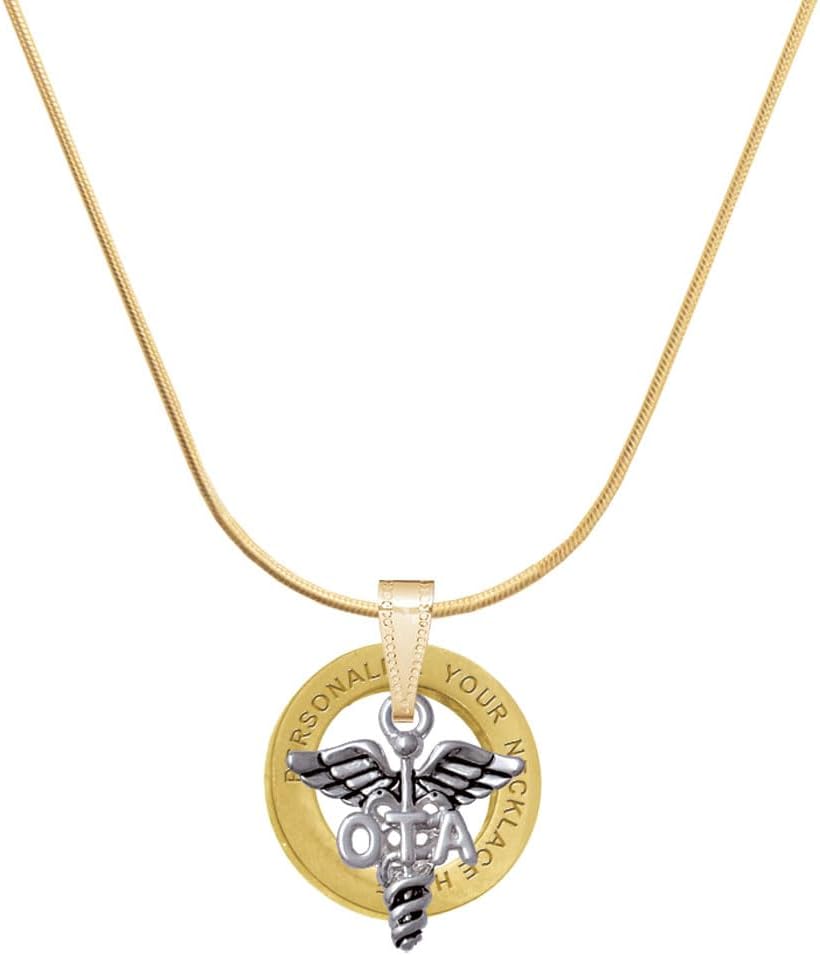 Delight Jewelry Silvertone Caduceus - Therapist - Custom Goldtone Message Ring Necklace, 18"
