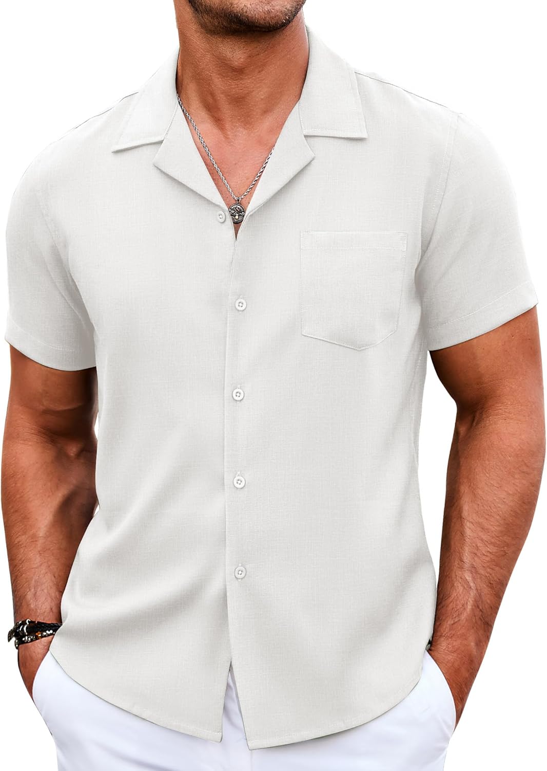 COOFANDY Men's Casual Button Down Shirts Short Sleeve Summer Beach Shirt Cuban Vacation Textured Shirts with Pocket