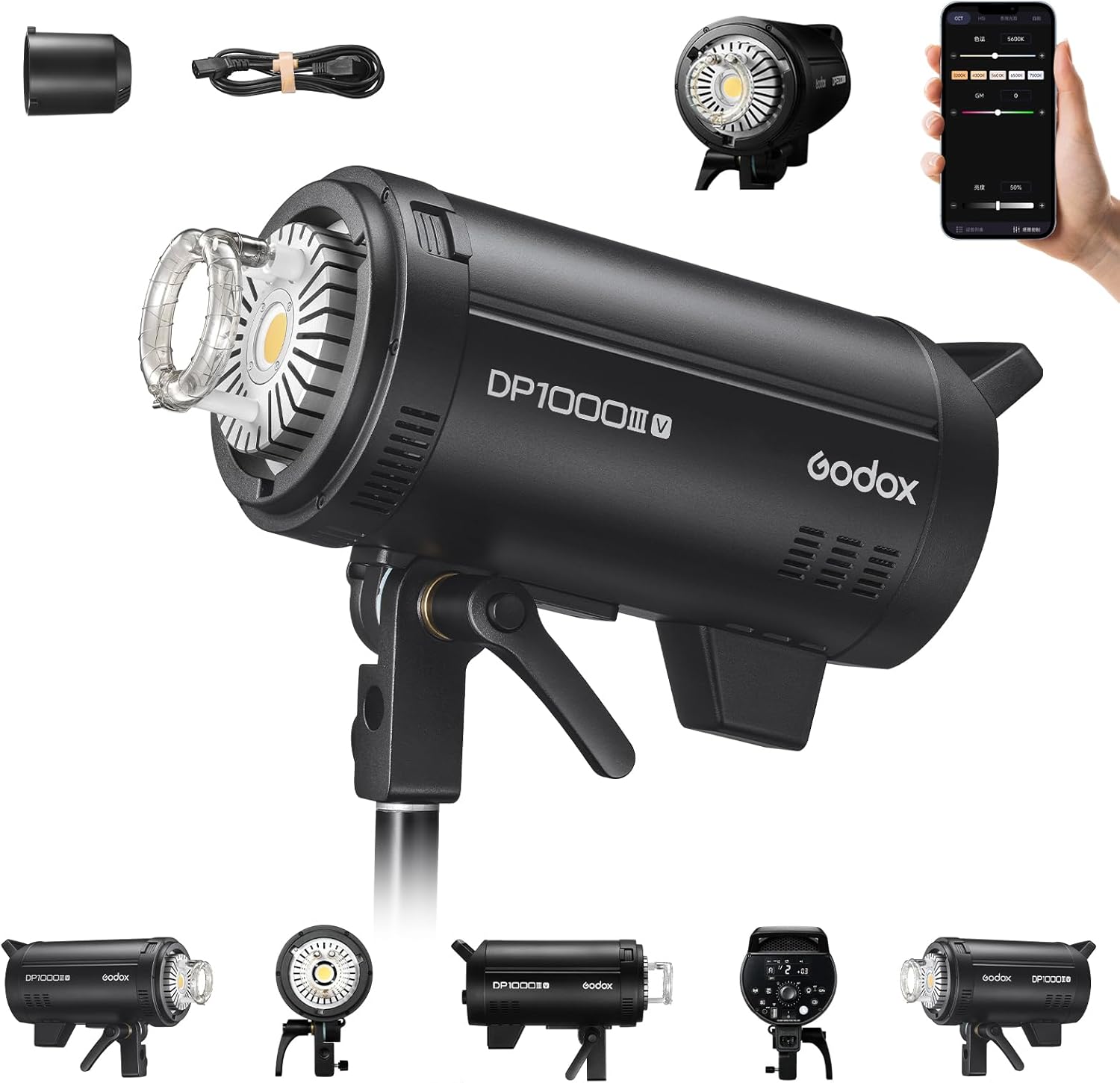 Godox DP1000III-V DP1000IIIV Studio Flash, 1000ws Estrobo Monolight de Día para Exteriores, Sistema Inalámbrico 2.4G X, Lámpara de Modelado de 30W, Montaje Bowen para Fotografía de Producto, Retrato y Boda