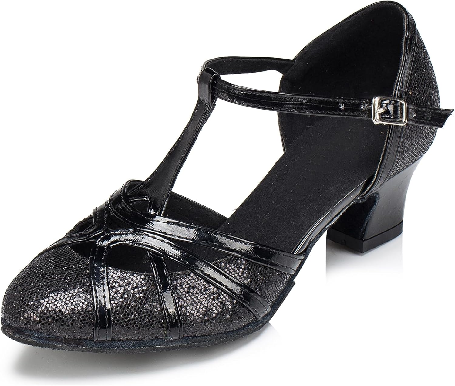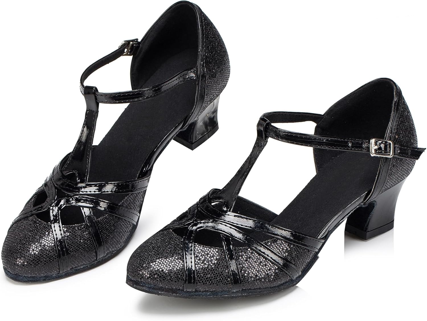 Minishion Women's T-Strap Dance Heels Glitter Salsa Ballroom Shoes Wedding Party Pumps
