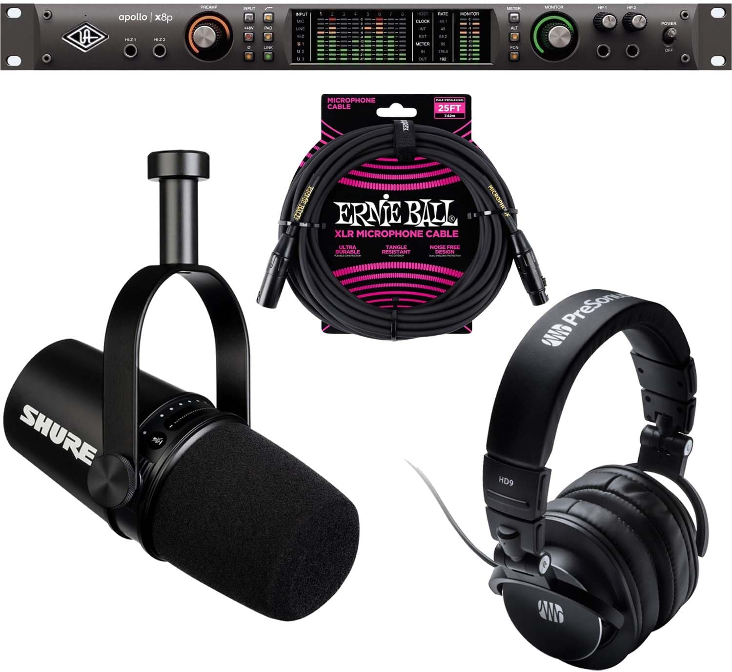 Universal Audio Apollo x8p, Shure MV7 Mic, Presonus HD9, ErnieBall XLR Cable Bundle