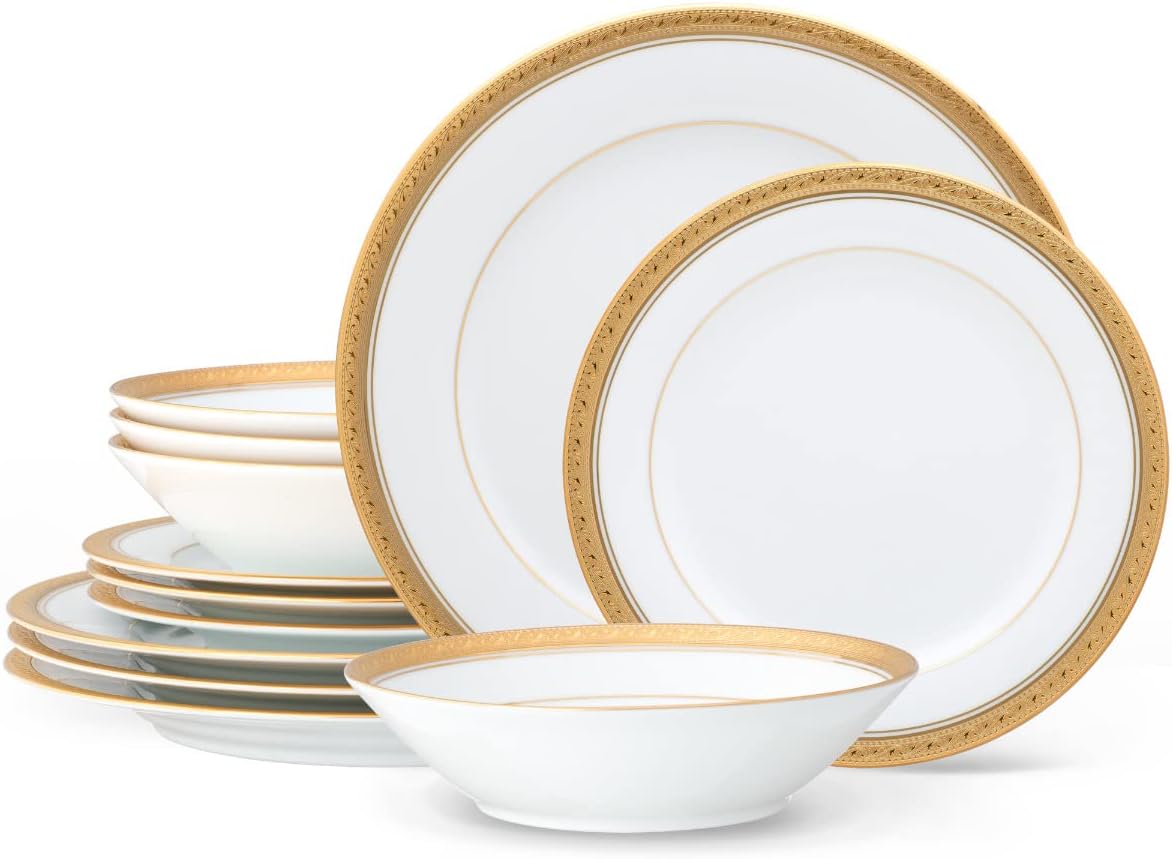 Noritake Crestwood Gold 12-Piece Dinnerware Set, Service for 4