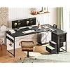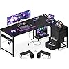 AODK L Shaped Gaming Desk with 4 Drawers, 61" Reversible Home Office Desks with Power Outlets, L Shaped Computer Desk with USB Charging Port and Host Stand, Corner Desk, Easy to Assemble, Black