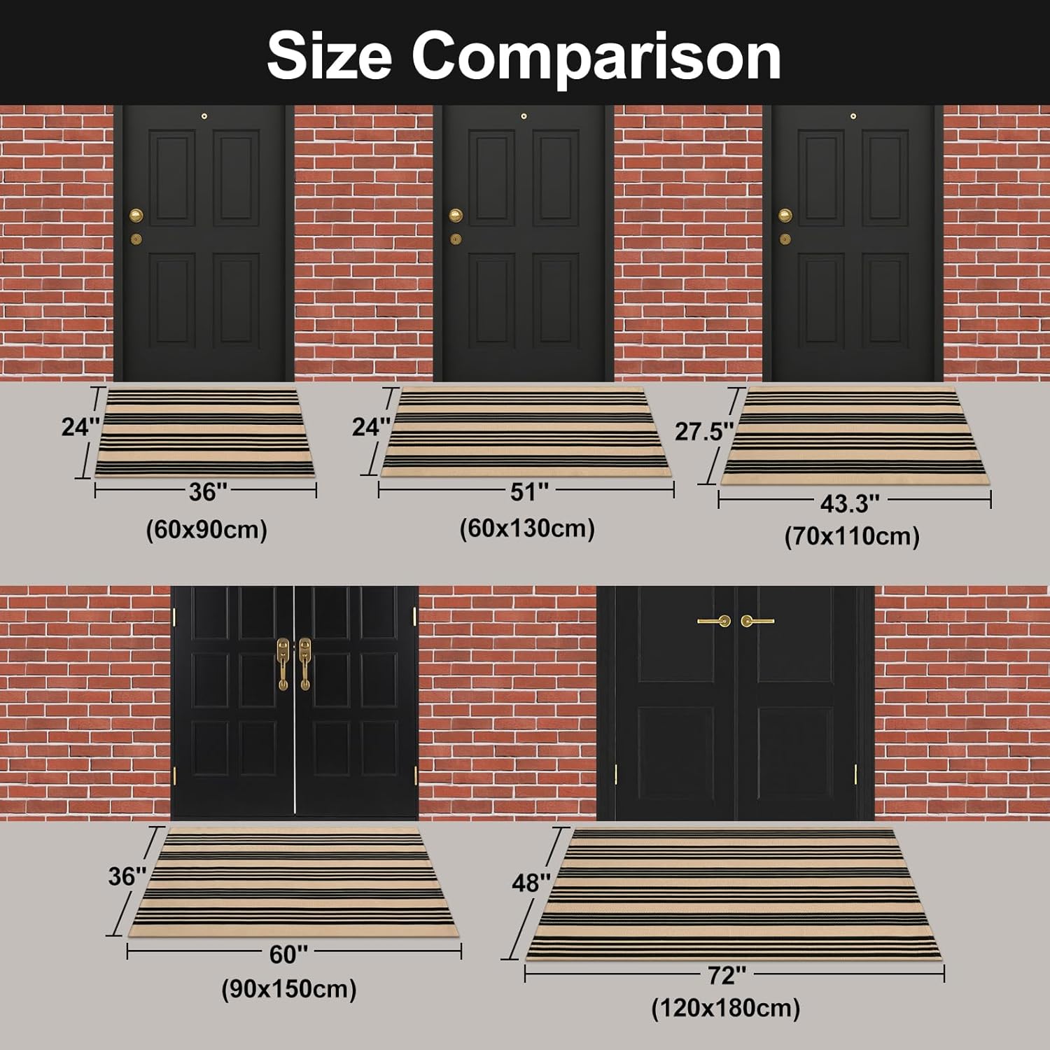 Excellent Durability: Made of high-quality cotton, OJIA outdoor mat is comfortable to step on barefoot and can withstand foot traffic and weather changes all year round. Delicate hand-woven area rug in classic black and tan stripes, give your house a new look.