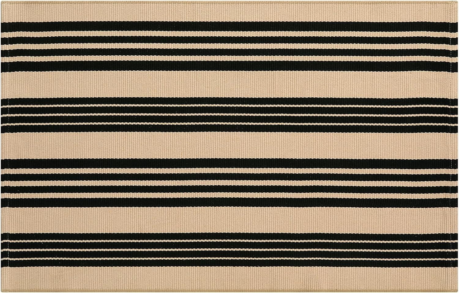 OJIA Outdoor Door Mat 27.5"x43", Black and Tan Fall Outdoor Rugs Cotton Hand-Woven Front Door Rug Machine Washable Door Mats Striped Entry Rug for Front Porch/Farmhouse/Kitchen/Entryway