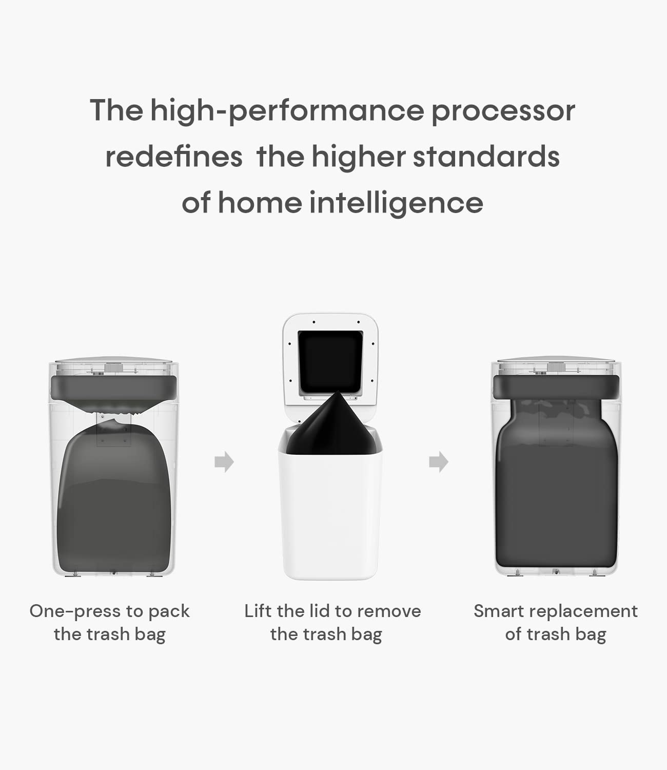 【Overload Sealing】It will automatically sense the location of the excess trash that exceeds the trash can and adapt to the height of trash and extend the trash bag to seal. Compared with T AIR X and T Air Lite, it has no pull strap and can automatically open the lid for overload packing.