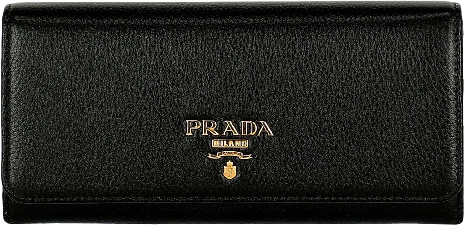 Prada Womens Vitello Grain Black Leather ID Holder Continental Long Wallet