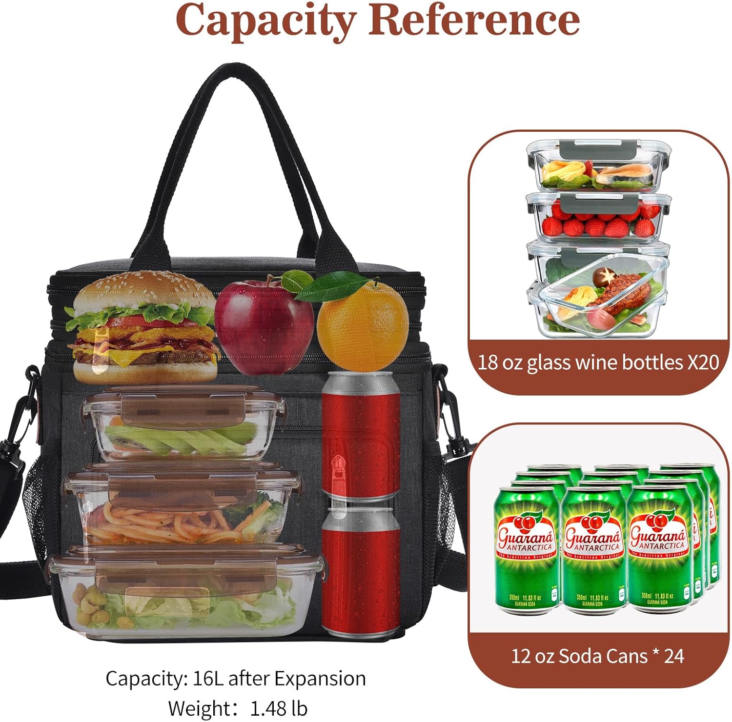 Lunch Box & Lunch Bag for Men Women, Large Insulated Adult Lunch Box Leakproof Lunchbox Cooler Bag for Work Picnic Beach,16L, Black