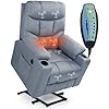 Esright Power Lift Recliner for Elderly, Electric Lift Chair with Heated Vibration Massage,Heavy Duty Electric Recliner with Side Pockets, USB Charge Port & Cup Holders, Grey