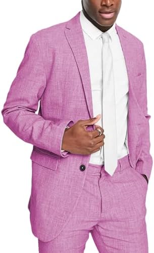 Mens 2 Piece Linen Suits for Men Slim Fit Casual Beach Wedding Summer Grooms Groomsmen Linen Blazer Pants Suit