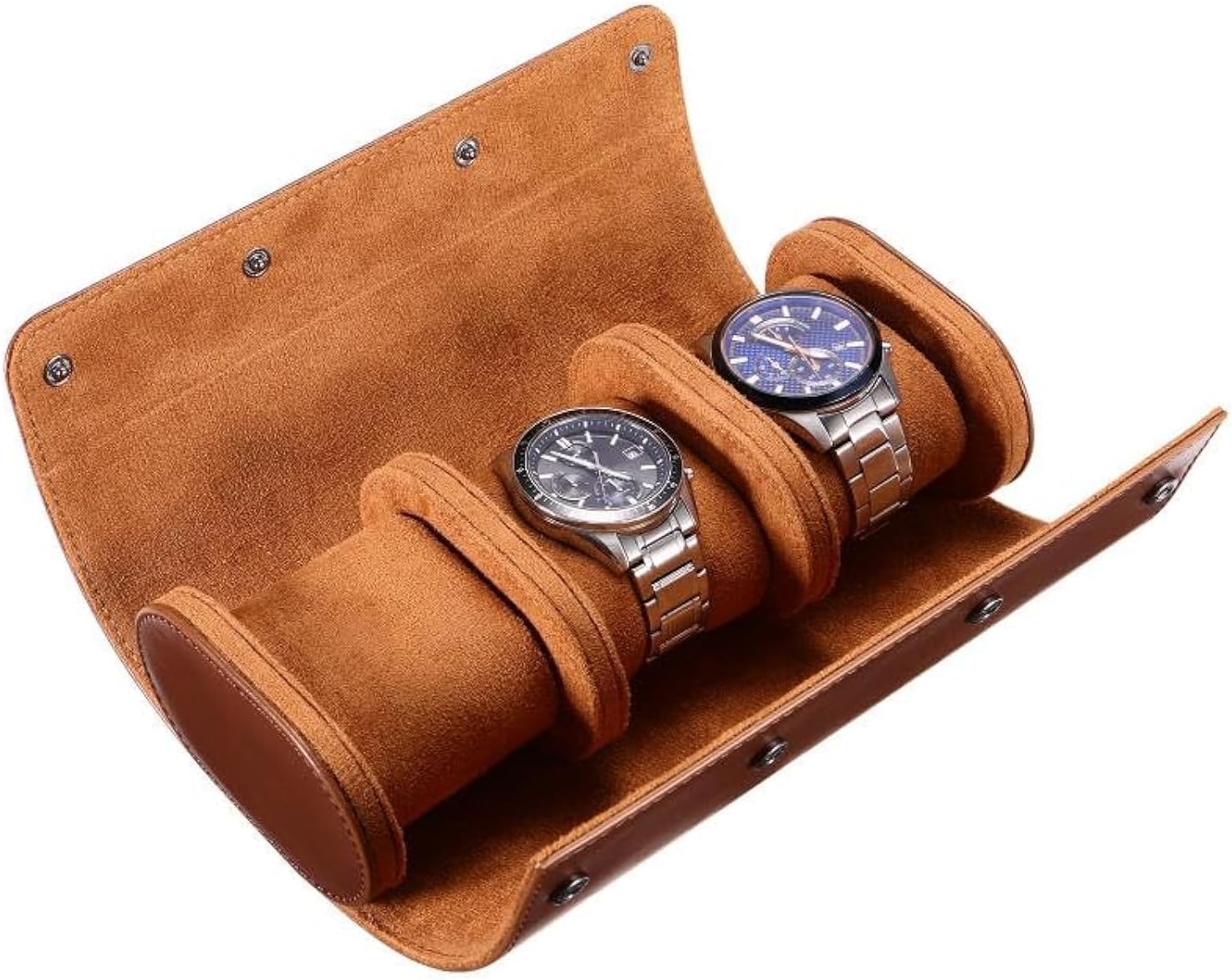 Watch Box for Men - Watch Roll Case Leather Watch Case Organizer with Removable Watch Pillows, Luxury PU Material Vintage Watch Display Case Storage for Watch (3 Slots Watch Box)