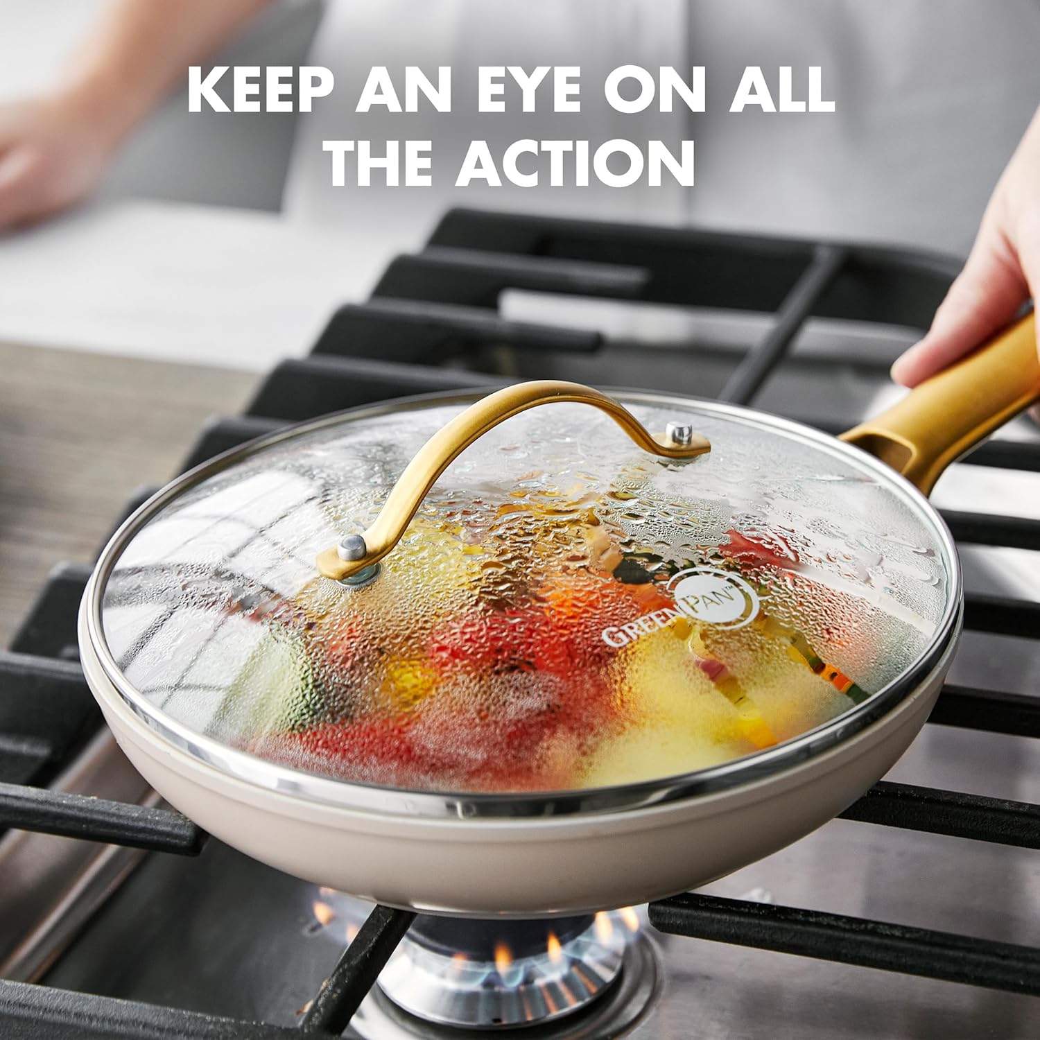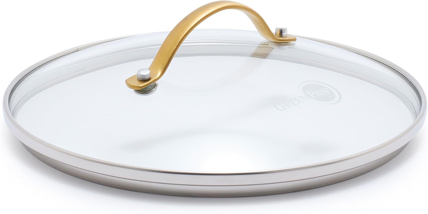 GreenPan 8" Tempered Glass Lid for Pots and Pans Cookware, Gold-Tone Handle with Matte Finish, Dishwasher and Oven Safe