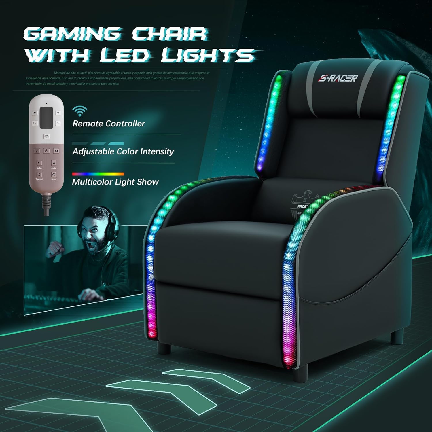 Homall LED Gaming Massage Recliner Chair Racing Style Single Living Room Sofa Comfortable Ergonomic Home Theater Seating (Grey)