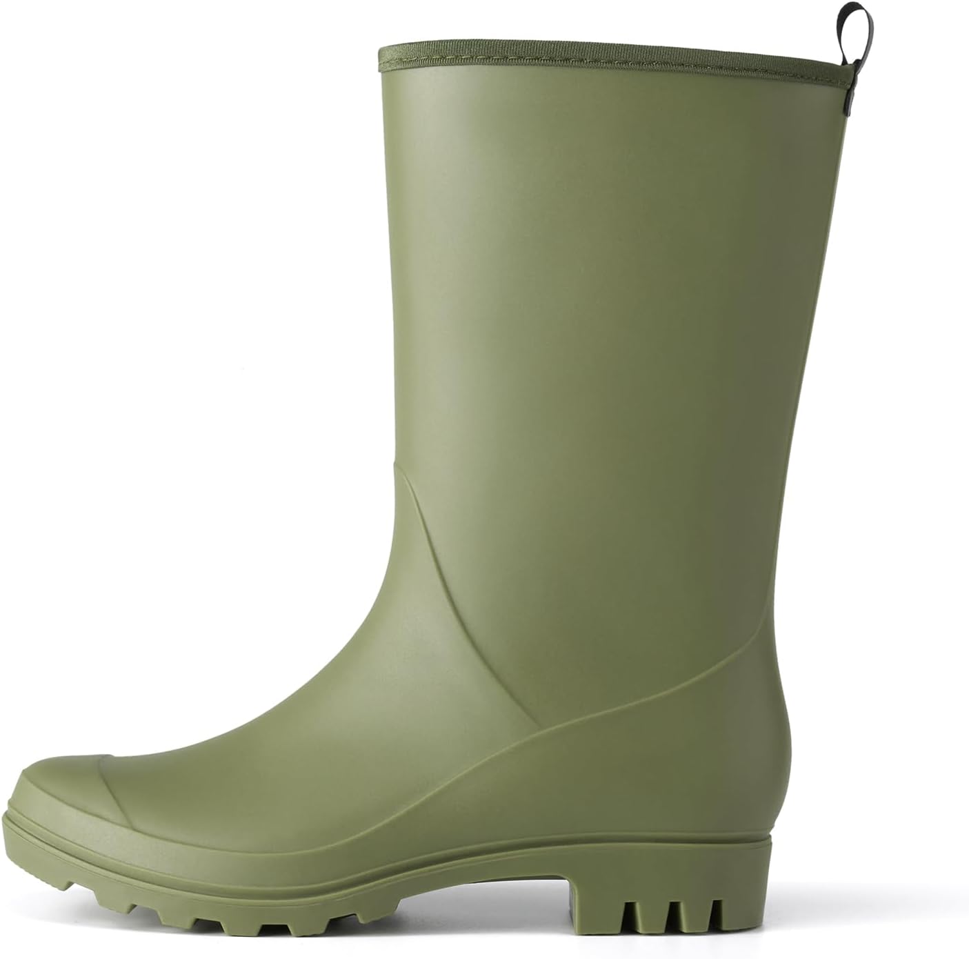 HISEA Women Rubber Boots Wide Calf Rain Boots Matte Surface Waterproof PVC Rubber Rain Boot Mid Height Rain Shoes for Outdoor Gardening Work Walking