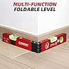 【MULTI-ANGLE MEASUREMENT】The Multi-Function Foldable Level features 3 extremely clear and intuitive blue acrylic vials, which obtain preciseness accuracy of 0.5mm/m providing a wonderful and joyful experience for measurement and calibration of indoor and outdoor jobs