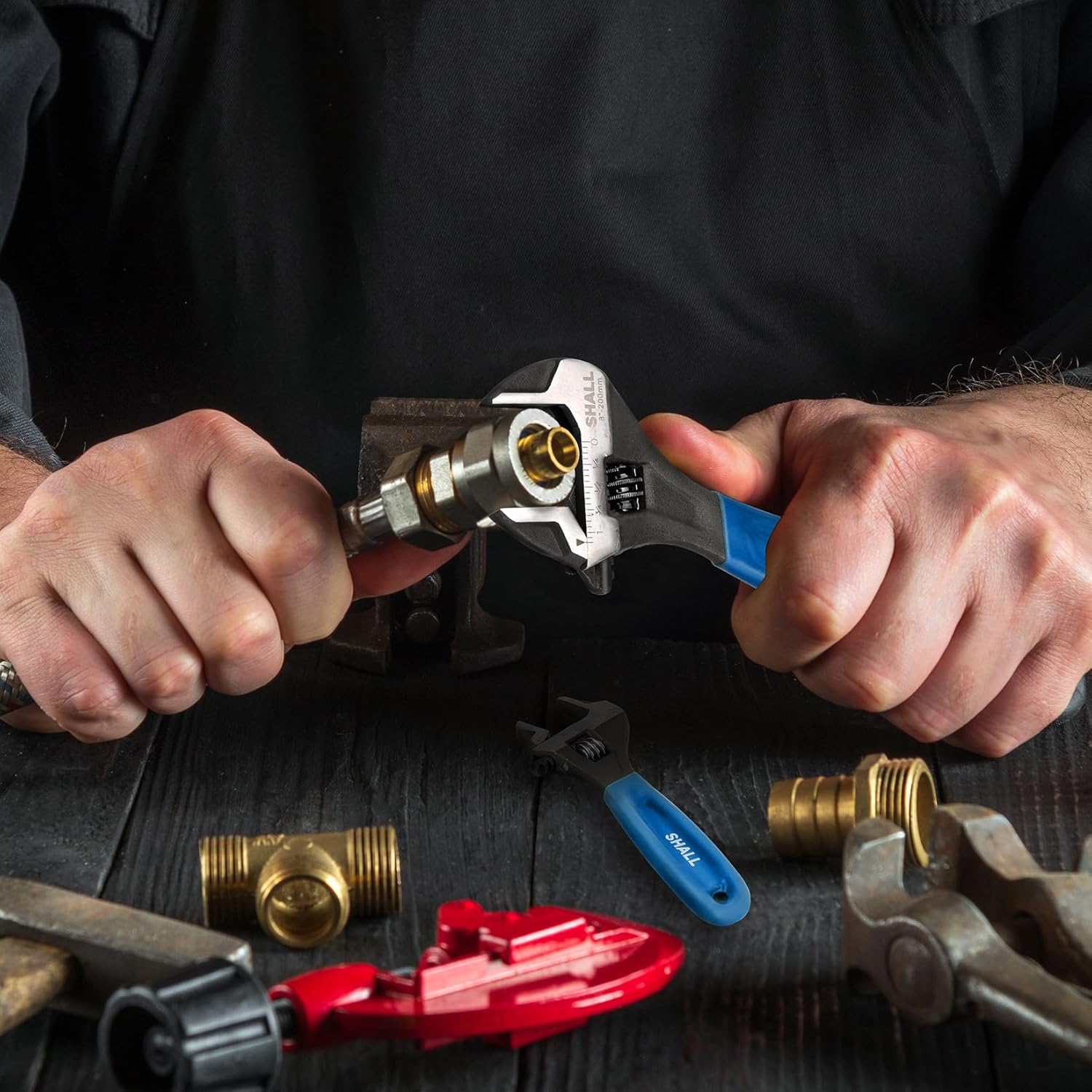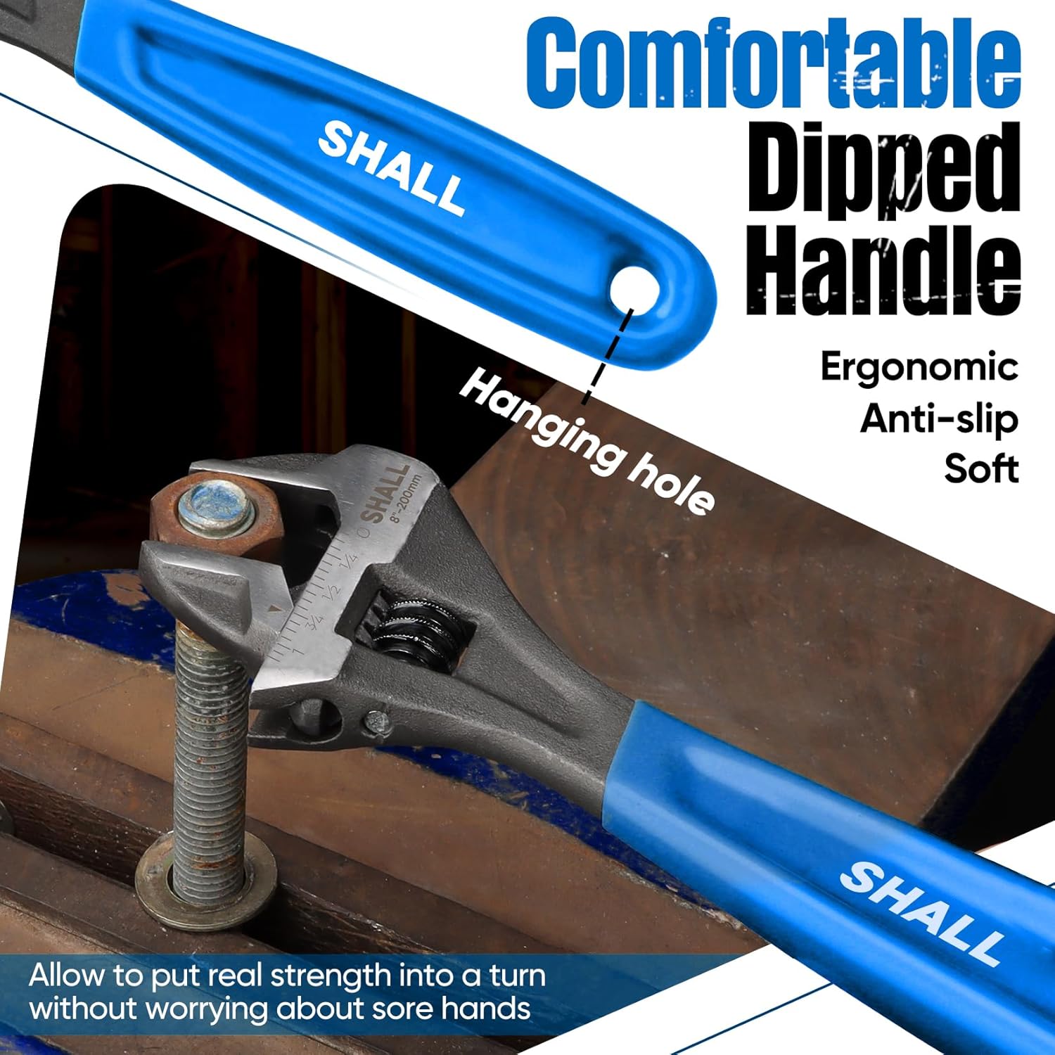 SHALL 3-Piece Adjustable Wrench Set, 10/8/6 Inch Cr-V Steel Wrench with Cushion Grip, Wide Jaw Black Oxide Wrench with Laser-etched SAE Scales for Home, Garage, Workshop and DIY, Dark Blue