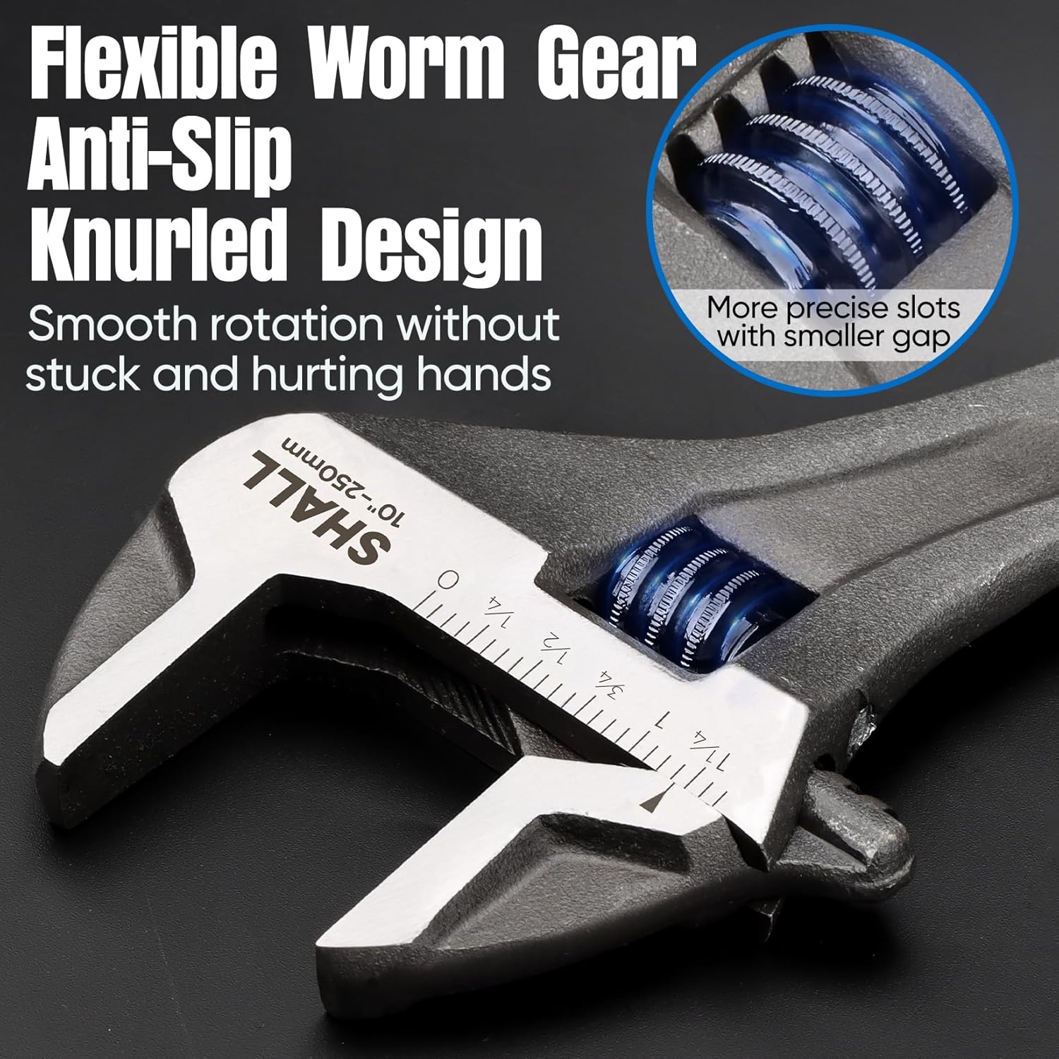 Flexible Worm Gear: With its non-slip knurled design, the smooth adjustment worm gear of the wrench quickly adjusts the jaw without jamming and hand injury; More precise slots with smaller gap ensure stays on the exact scale after adjustment