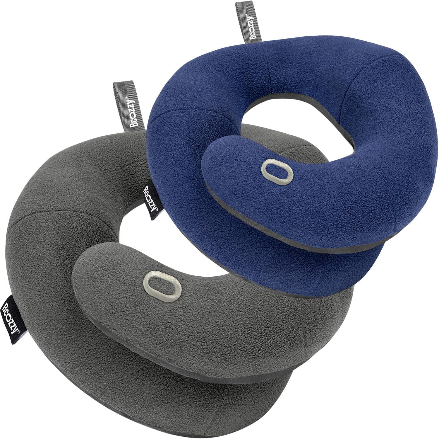 BCOZZY Pillow Bundle: Includes 2 Travel Neck Pillows for Adults, Featuring Double Support for Comfortable Sleep on The Plane. X-Large Size, in Gray and Large in Navy