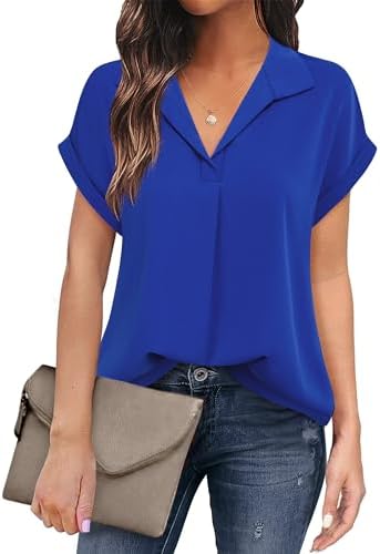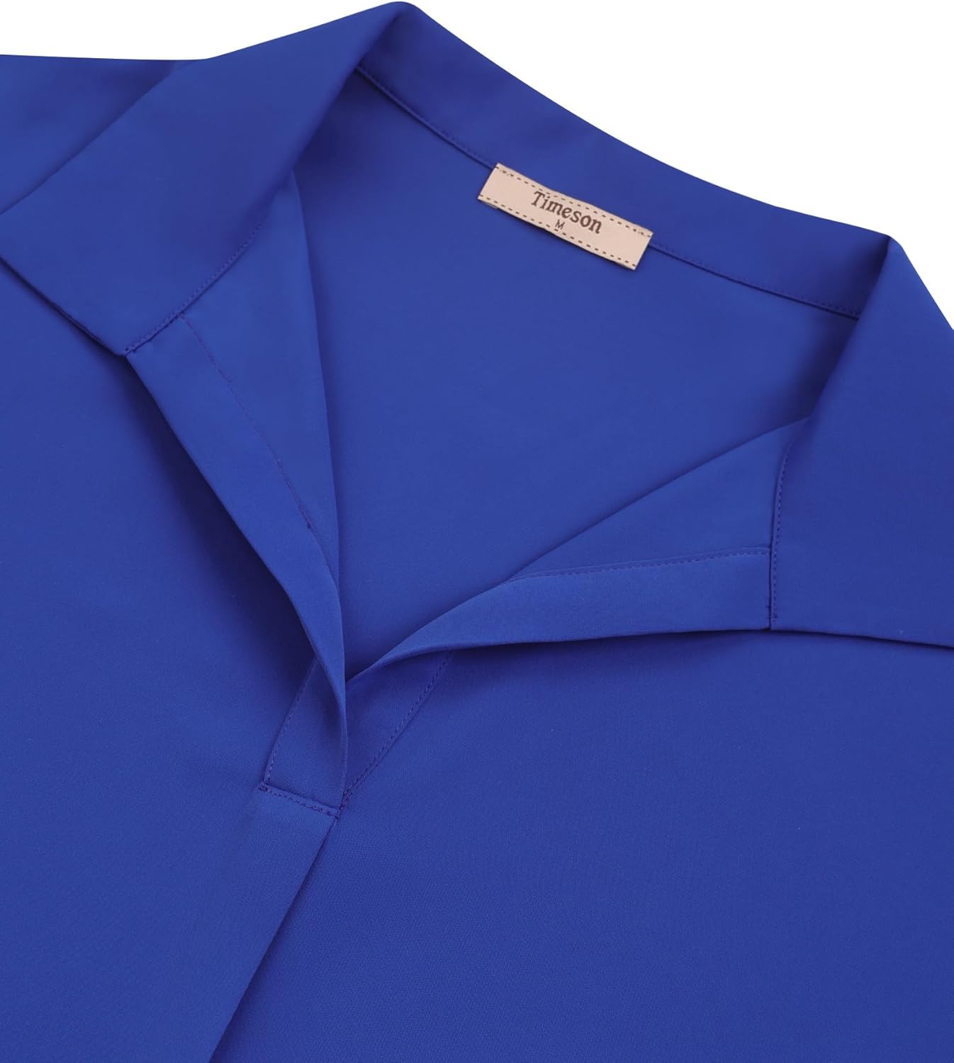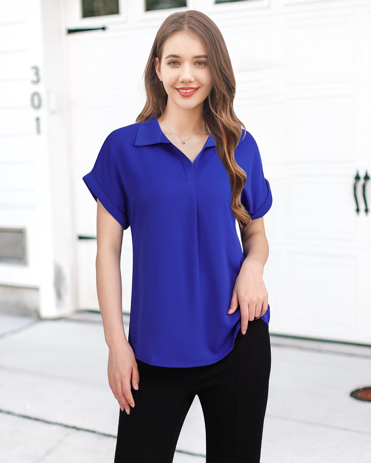 Timeson Women's Short Sleeve Chiffon Blouses for Office Work Business Attire Collared Shirts