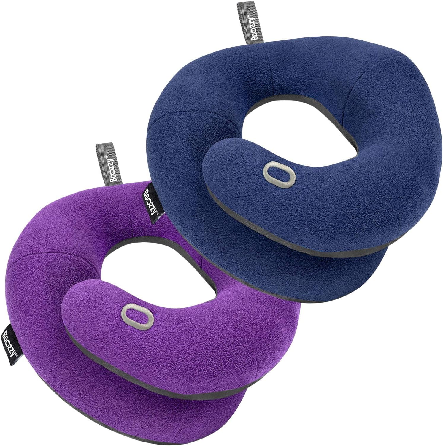 BCOZZY Pillow Bundle: Includes 2 Travel Neck Pillows for Adults, Featuring Double Support for Comfortable Sleep on The Plane. Large Size, in Navy and in Purple