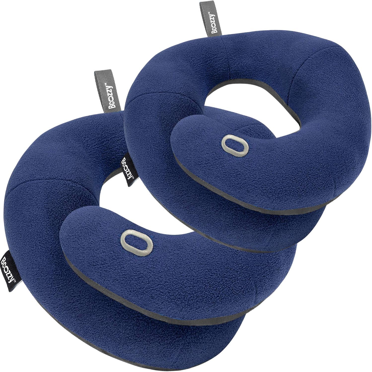 BCOZZY Pillow Bundle: Includes 2 Travel Neck Pillows for Adults, Featuring Double Support for Comfortable Sleep on The Plane. X-Large Size in Navy and in Large in Navy