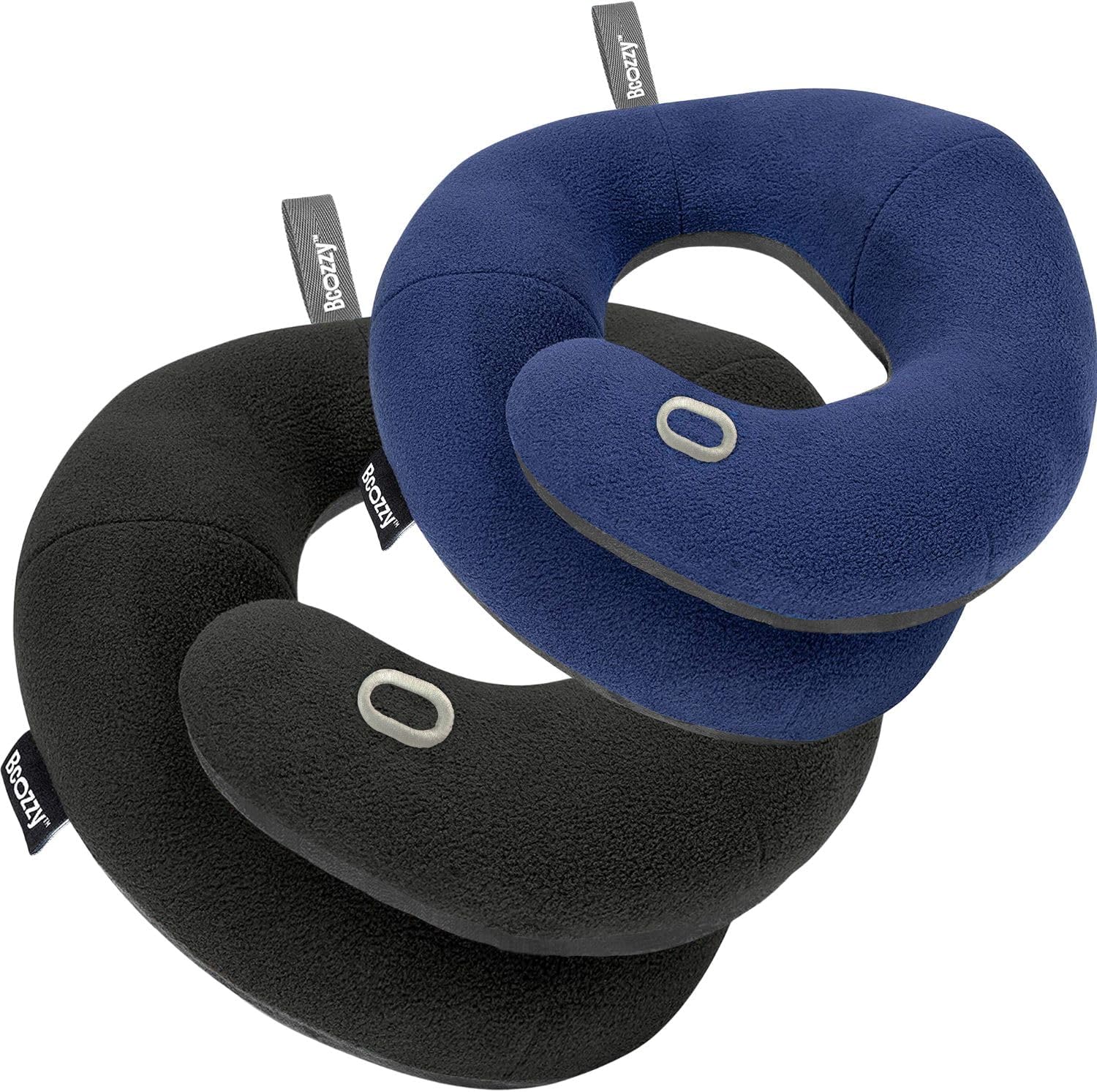 BCOZZY Pillow Bundle: Includes 2 Travel Neck Pillows for Adults, Featuring Double Support for Comfortable Sleep on Flights and roadtips. X-Large in Black and Large in Navy.