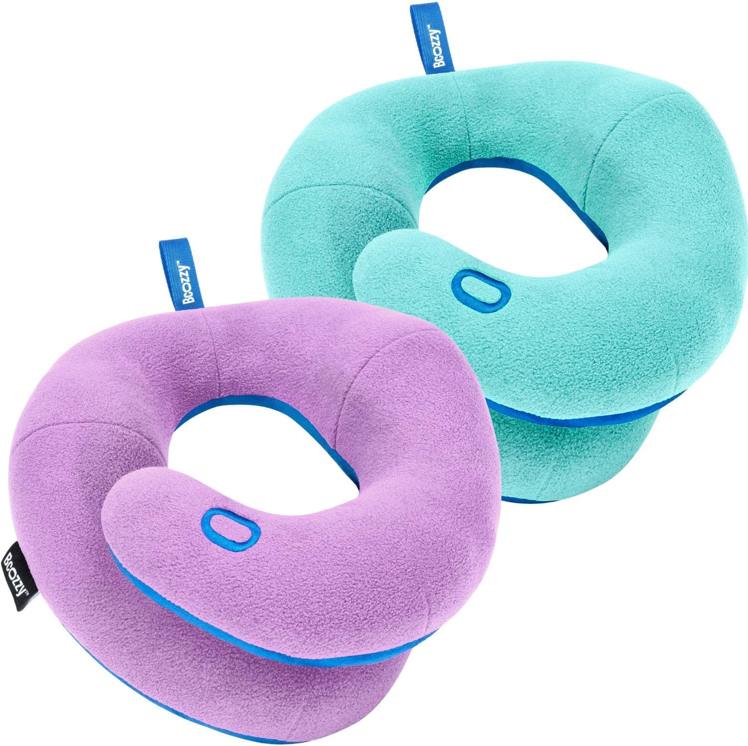 BCOZZY Pillow Bundle: Includes 2 Travel Neck Pillows, Featuring Double Support for Comfortable Sleep on The Plane. Medium Size, in Light Purple and in Light Blue