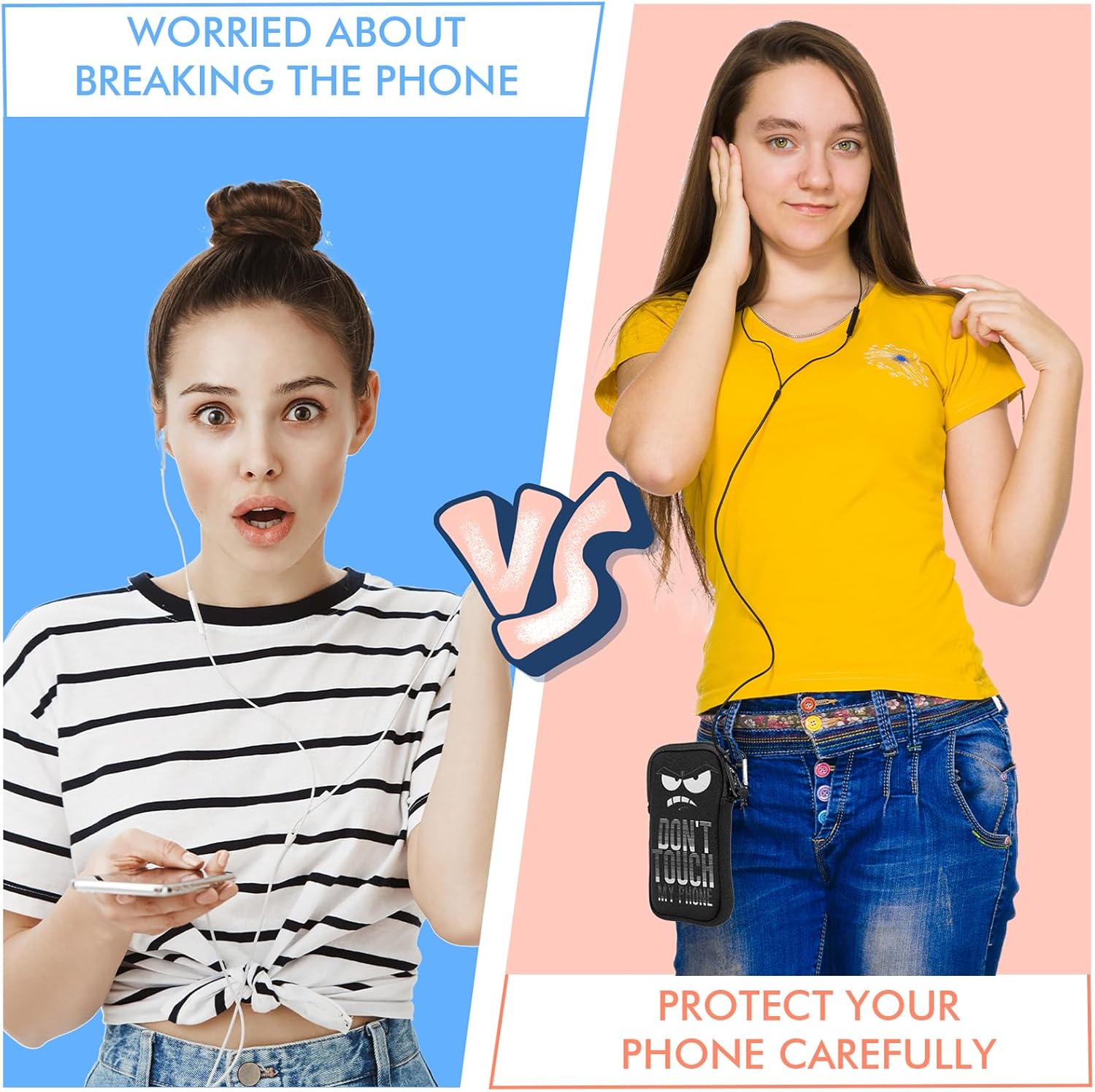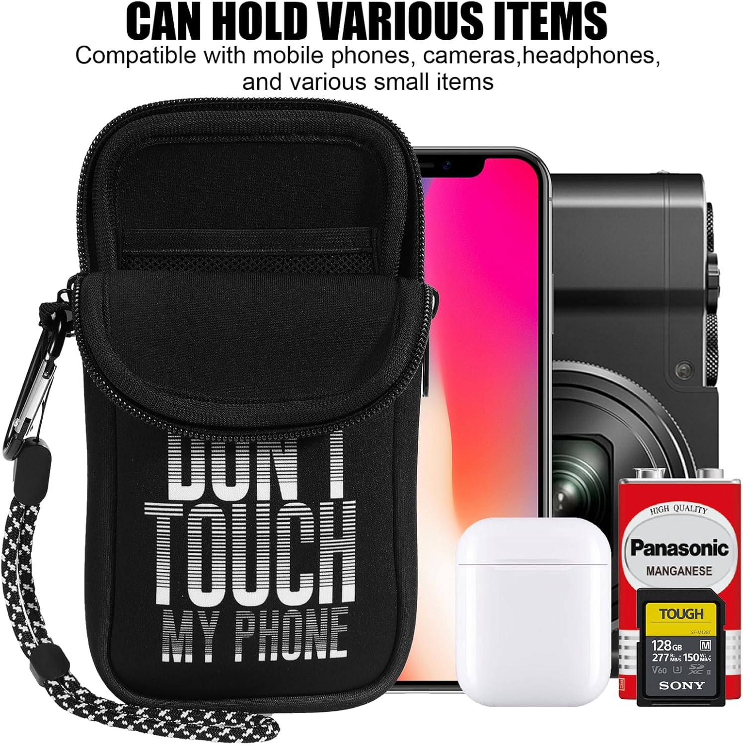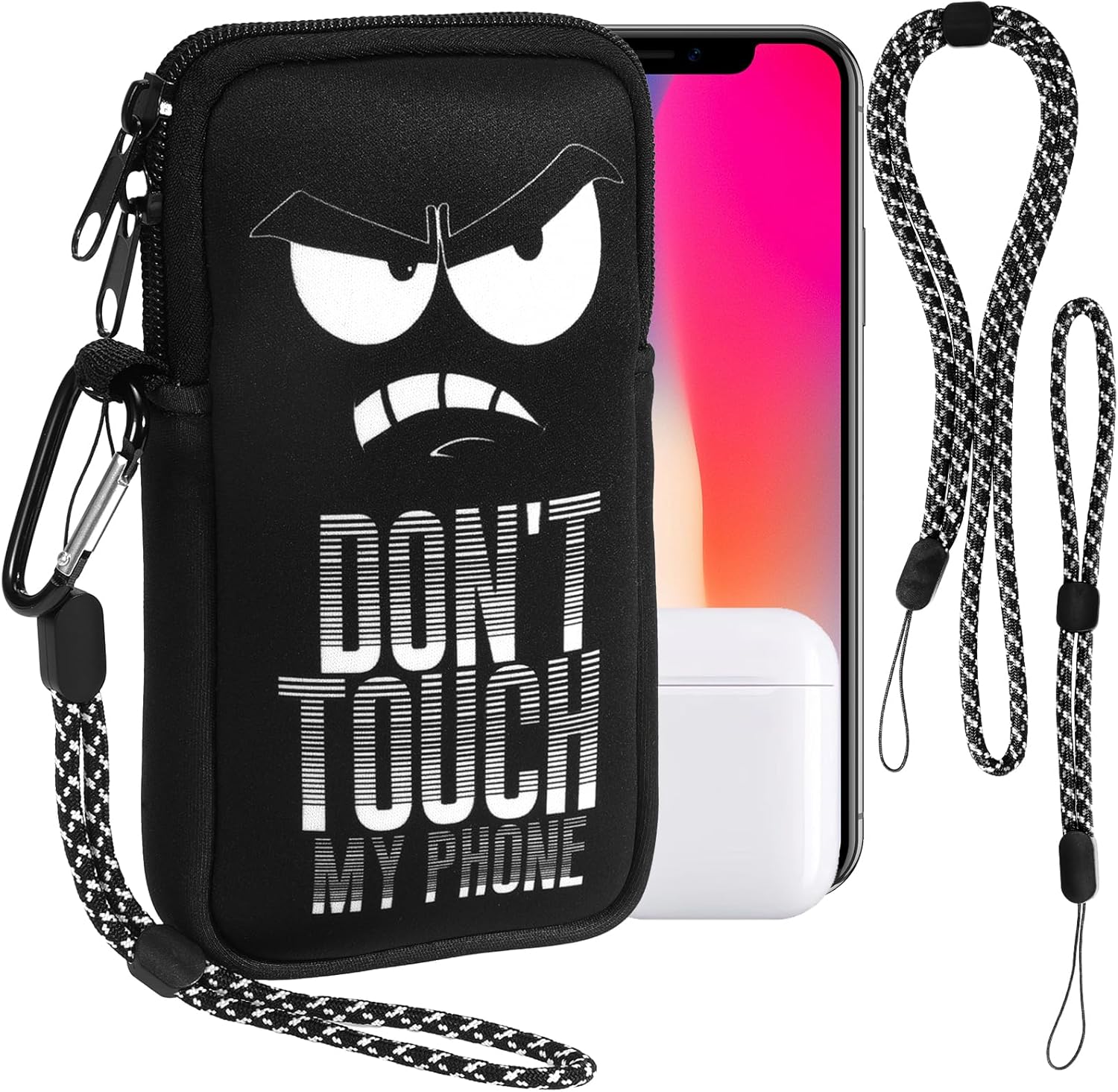 Protect Your Phone Anytime Anywhere Pwsap phone sock is up to the task of day to day living, but also would make a great accessories for SKI, exploring, hiking and travelling. A super versatile phone sock that will protect your phone well no matter where you choose to take it. Soft Padded & Full Protection Our cell phone sleeves is made of cushioned neoprene fabric, stretchy fit and water resistant, keep mobile phone, glass screen or camera lens from scratch, crack, sweat, accidental drop. More Sweet Designs 1.Personalized design "Don't Touch M* Phone" pattern, bold and fun. 2.With interior mesh pocket, convenient to store cash, cable, cards and other small items. 3.Double zippers ensure the inside items secure. 4.Attached 2 different lengths lanyard strap, you can hold in hand or wear it around the neck. 5.With durable carabiner, available hook to bag or belt. Package including: 1 x Large Phone Pouch 1 x Long Strap 1 x Short Lanyard 1 x Carabiner Warm Tip The large phone sleeve fit for 6-6.9 inch phones with a thin case small to large smartphone. It is better for you to CHECK the size of your phone with case before purchasing.