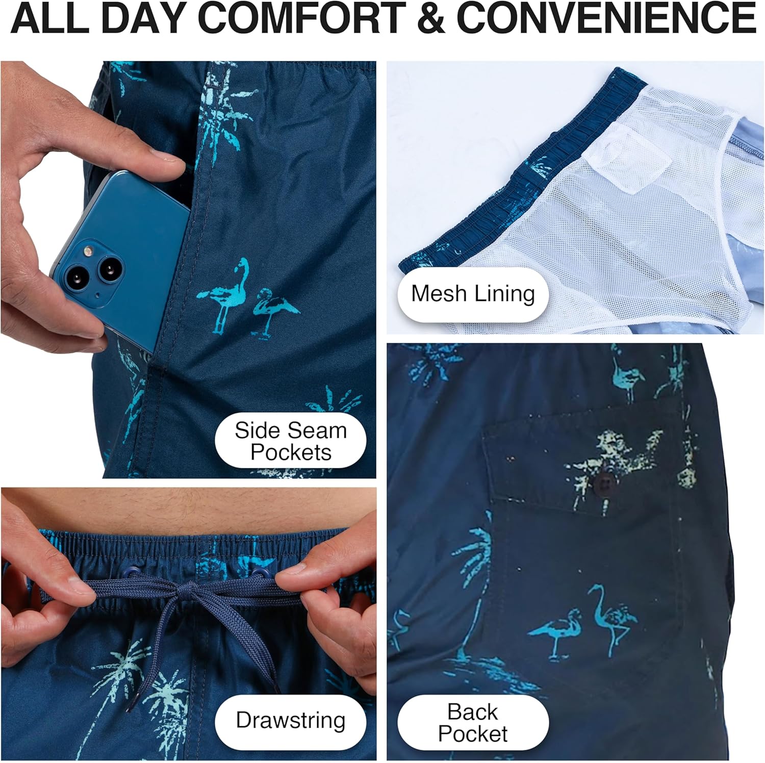 Kanu Surf presents our newest swim trunks yet. Whether headed to the Beach or the Pool or just lounging around on a hot day, Kanu Surf, a surf and swim lifestyle brand, is well known for great prints and colors along with high quality functional apparel for the whole family. All of our swim trunks are made with our comfort technology quick dry fabric with a UPF rating of 50+. All trunks have 2 side pockets. Some swimming trunks have 1 or 2 cargo pockets as well. Most trunks feature triple needle stitching at seams and rises for extra durability. These trunks are built to last. Our range of prints include Stripes, Florals, Tie-Dyes, Tropicals, Geometrics and conversationals including Pineapples, Flamingos, Lemons, Boats, Parrots, Palm Trees & more! All trunks have a mesh lining. Matching styles available in kids sizes so Dads and Kids can hit the beach scene as a team. Check out our many Kanu Surf rashguards and swim shirts to make a great set!