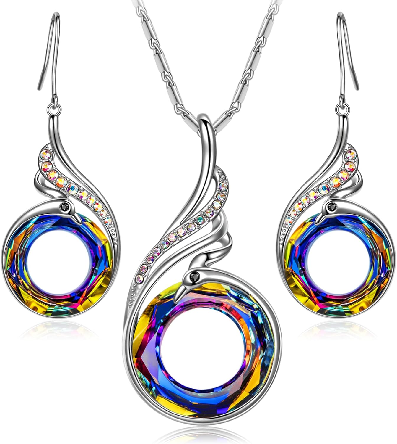 Kate Lynn "Rise From the Ashes" Phoenix Earrings & Necklace Set, Symbol of Luck and Renewal