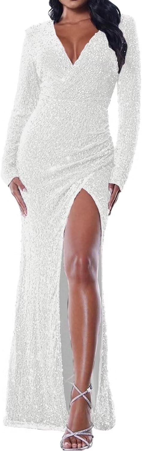 Fivsole Sequin Long Sleeve Prom Dress 2025 Long Sparkly Formal Dress Long Sleeve Evening Gowns