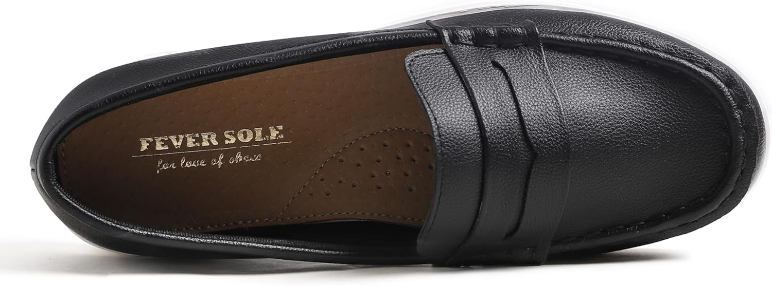 FEVERSOLE Comfort Women's Leather Daily Loafer Driving Flats Flexible Walking Boat Shoes