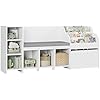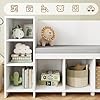 HOSTACK 67" Kids Reading Nook with Bench, Kids Bookshelf and Bookcase with Seat Cushion and 6 Storage Cubbies, Toy Storage Box on Wheels, Toy Chest for Playroom, Bedroom, School, White