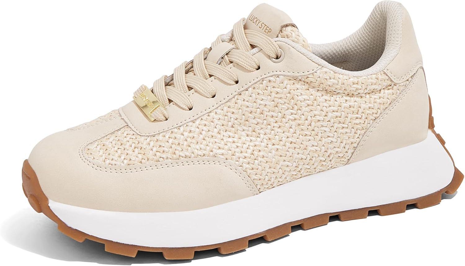 LUCKY STEP Women's Platform Fashion Sneakers Retro Classic Trainers Casual Lace-up Stylish Tennis Running Walking Shoes
