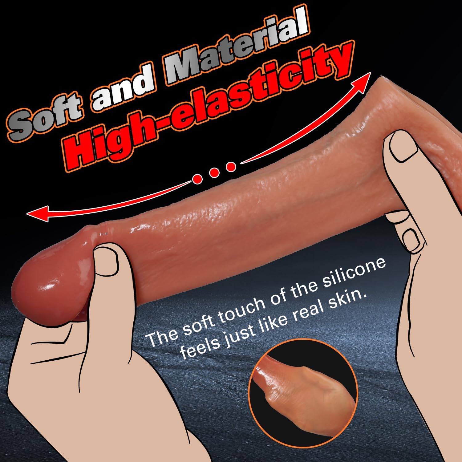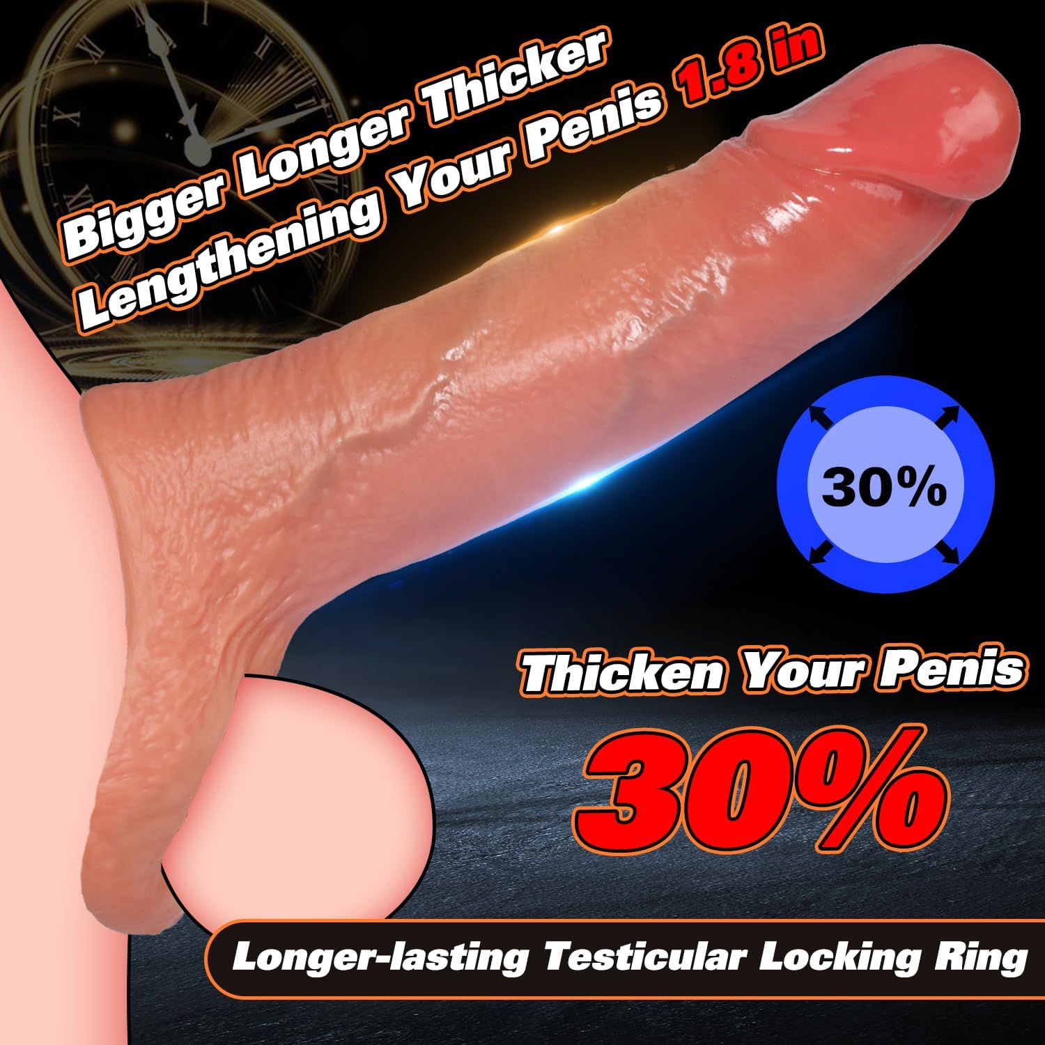 Reusable Cock Sleeve, Adult Toys 6.7'' Penis Sleeve, Silicone Penis Cuff Thickened Testicle Ring Male Sex Toys, Penis Enlarger and Extender for Men, Flesh